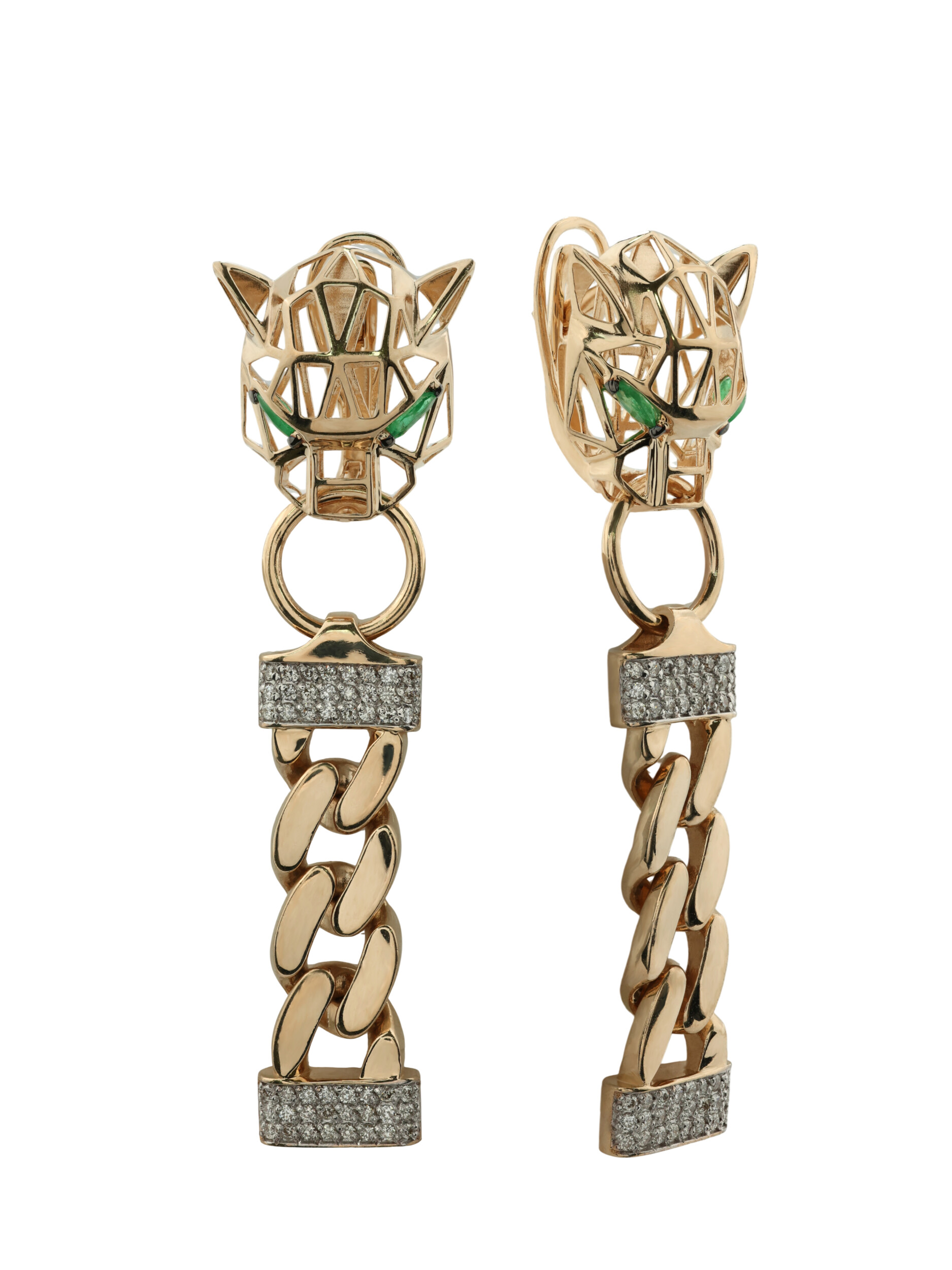 Серьги из золота c бриллиантами и изумрудом