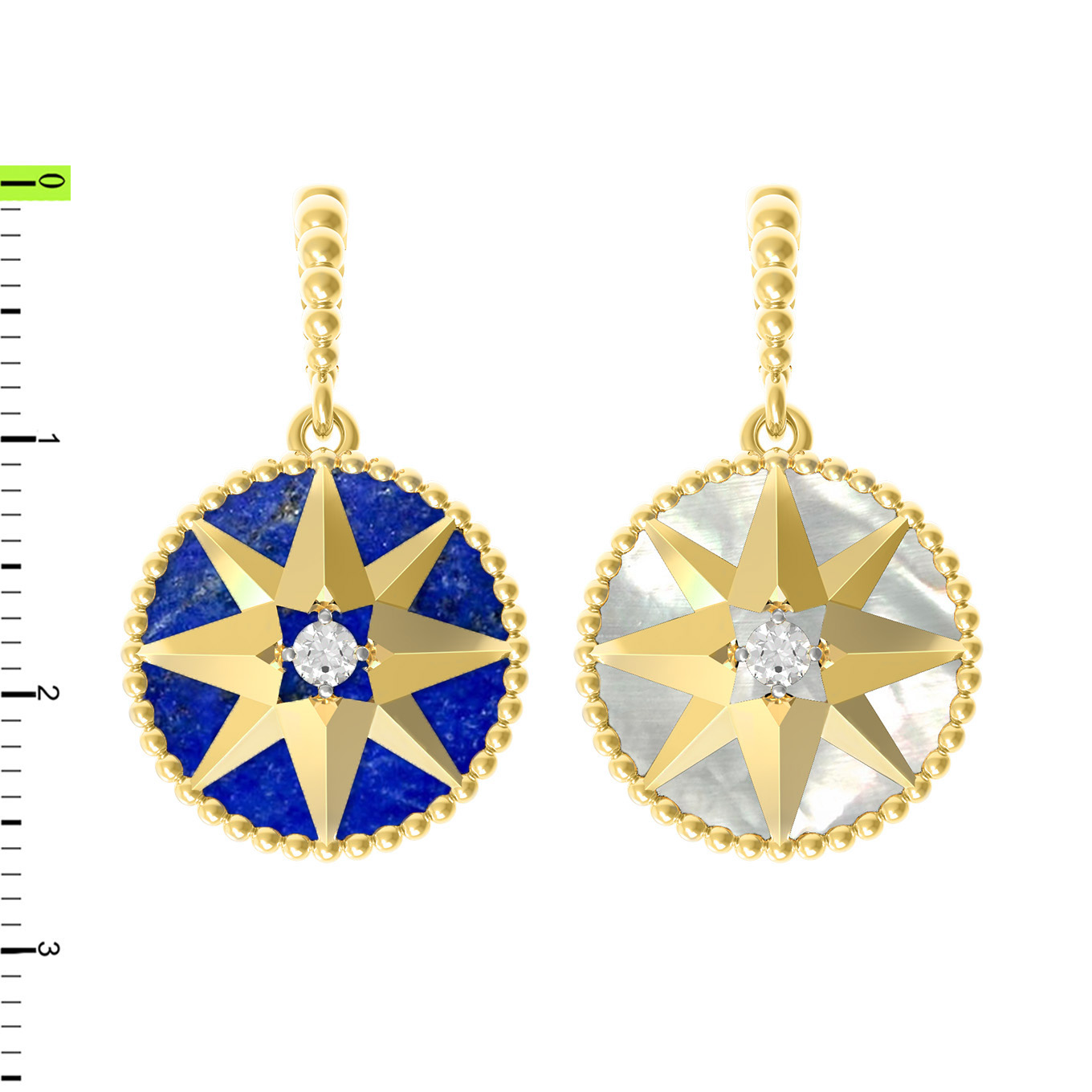 Подвеска из лимонного золота c фианитом, лазуритом и перламутром