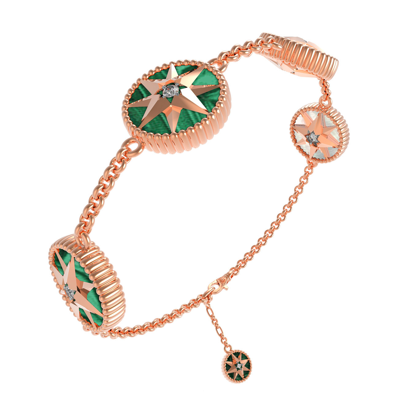 Браслет из золота c фианитом, малахитом и перламутром