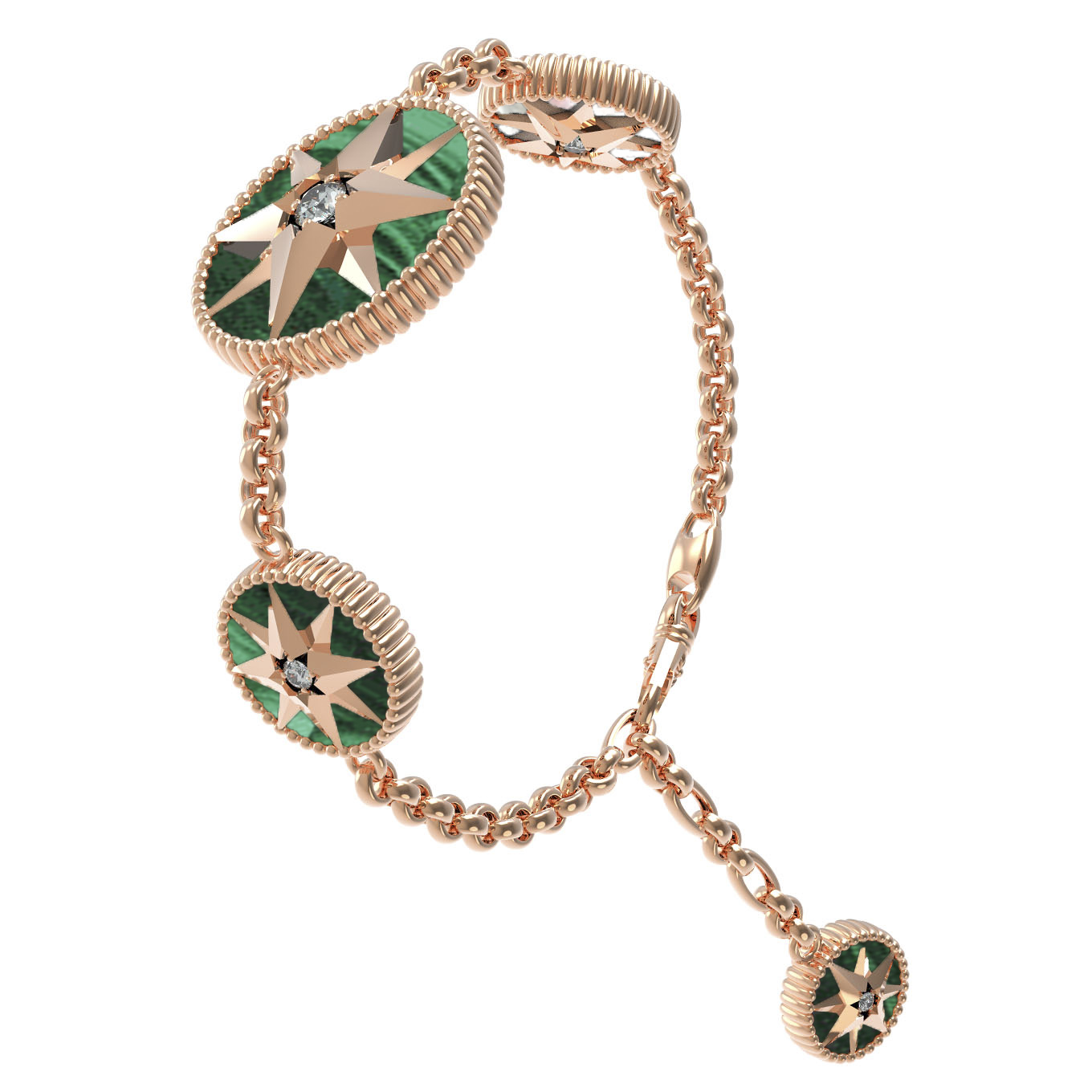 Браслет из золота c фианитом, малахитом и перламутром