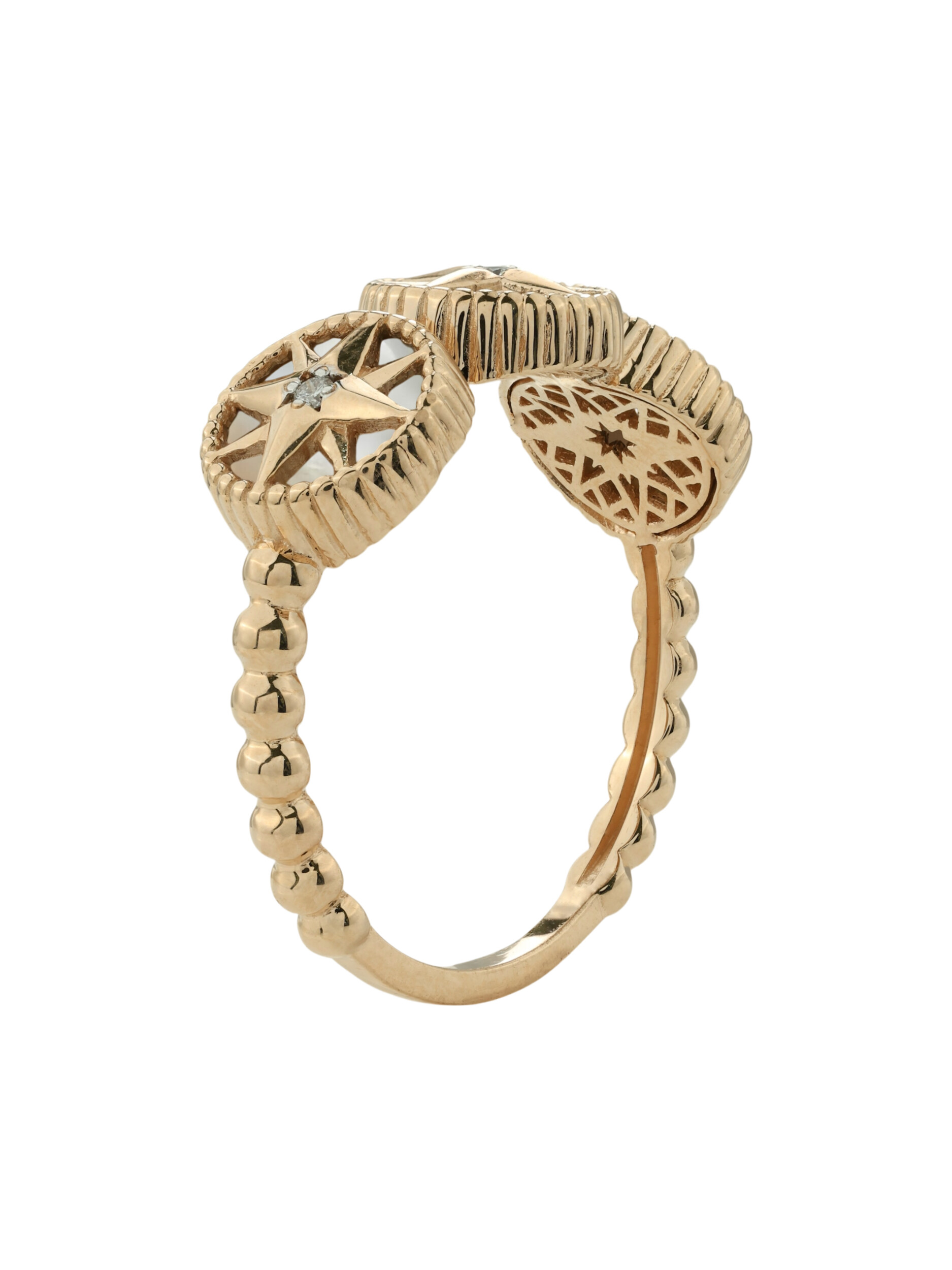 Кольцо из золота c бриллиантами, ониксом и перламутром