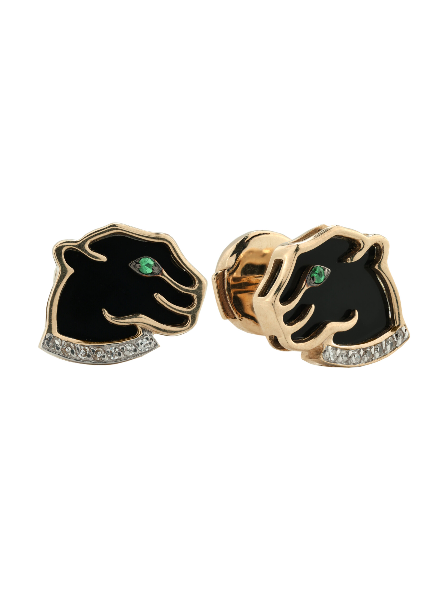 Серьги из золота c бриллиантами, изумрудом и ониксом