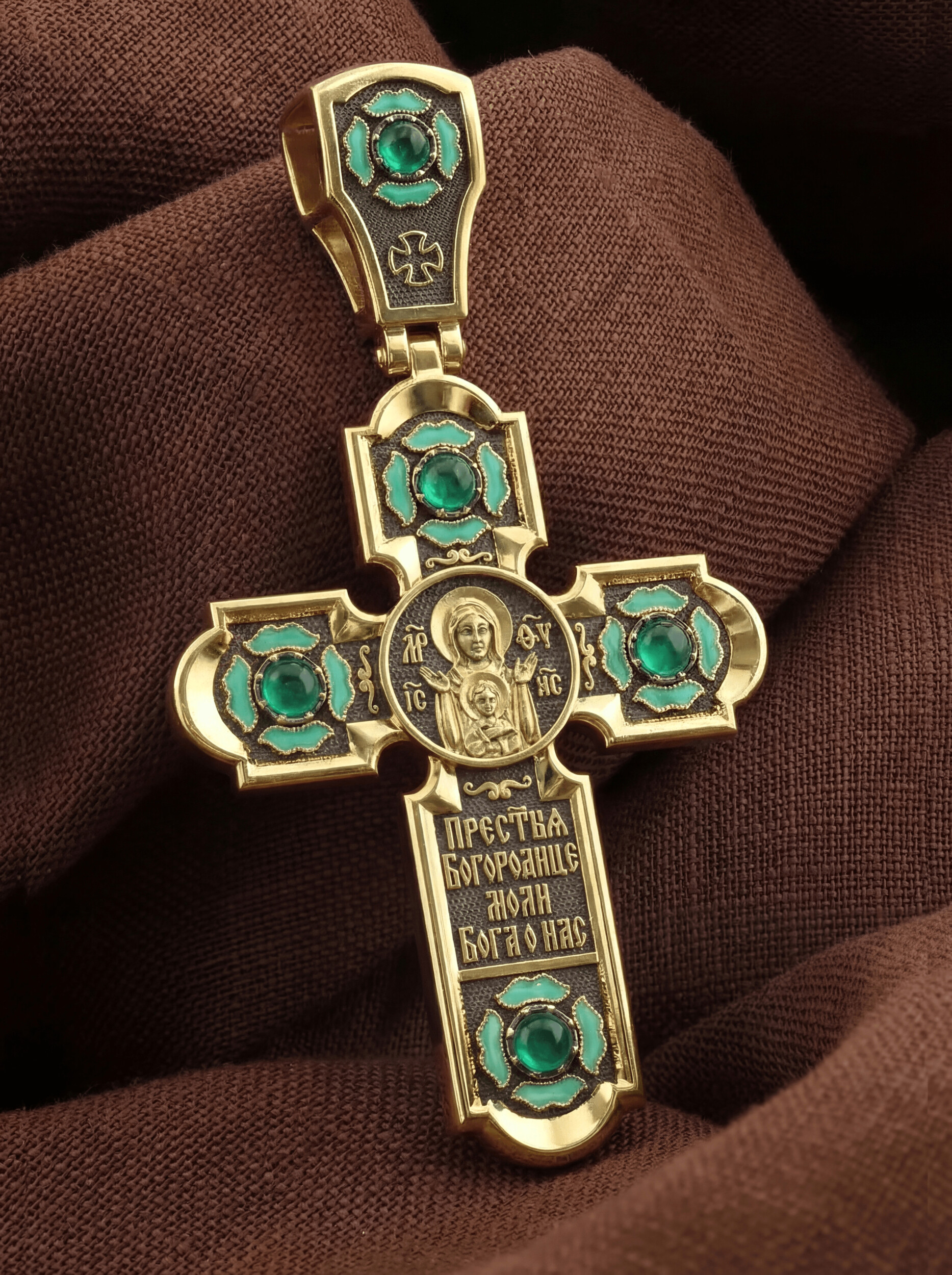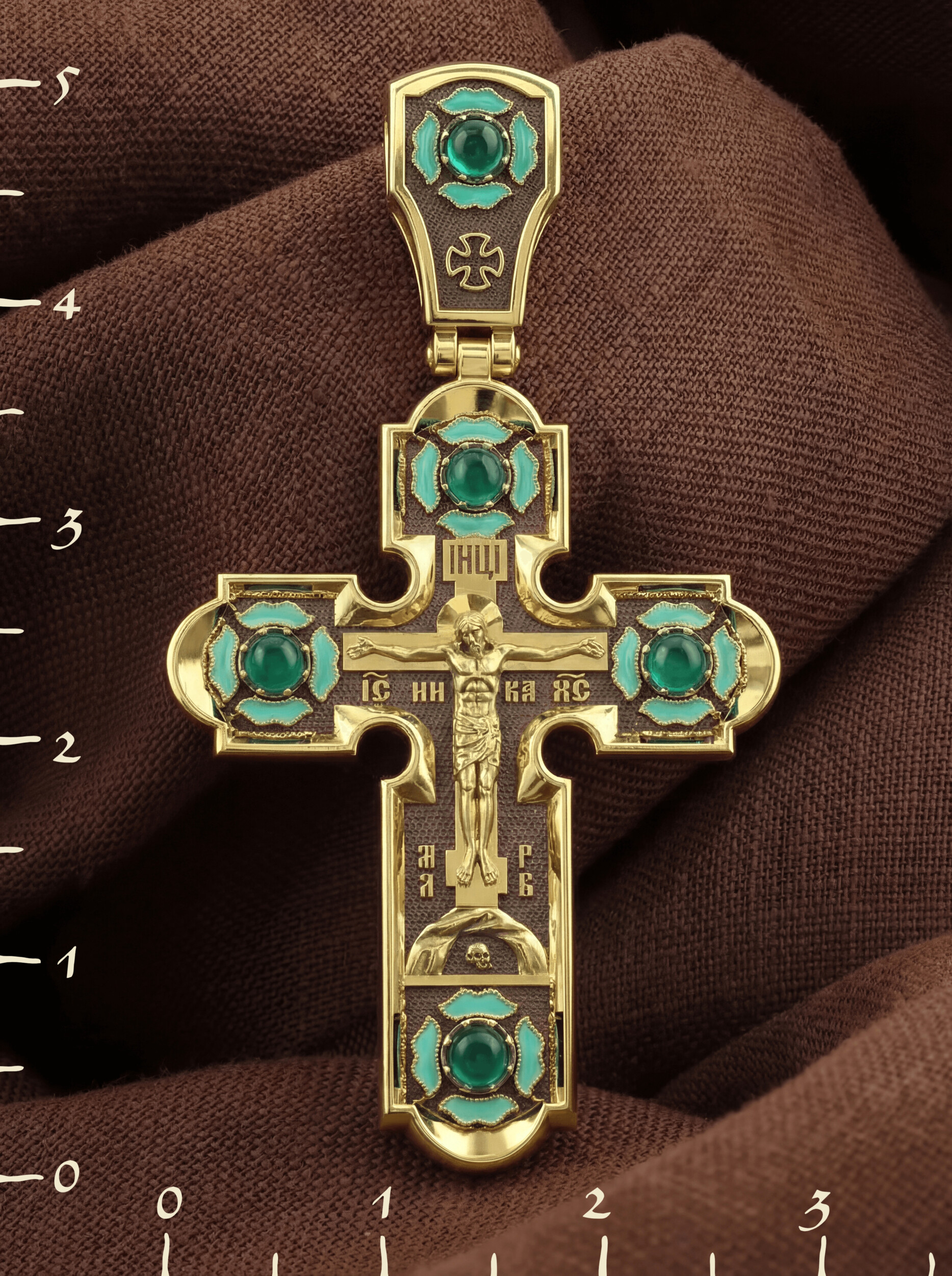 Крест из лимонного золота c эмалью и хризопразом