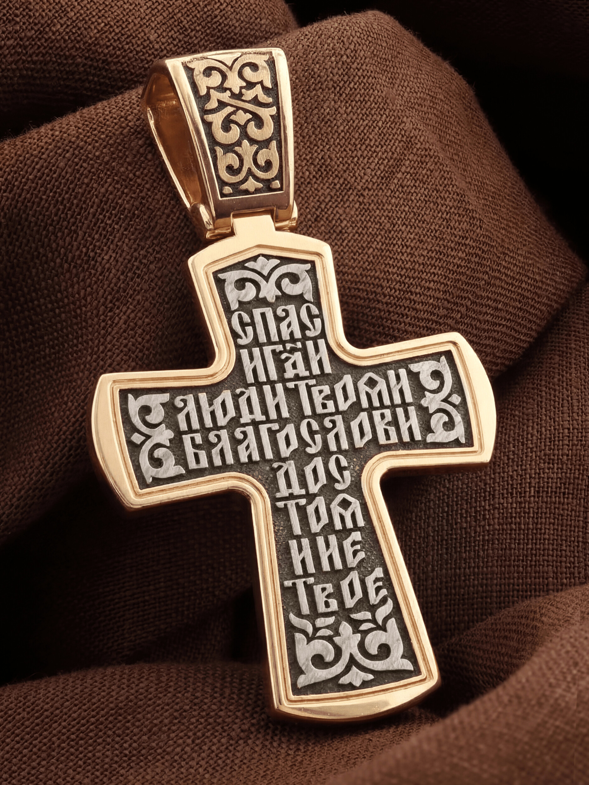 На оборотной стороне креста написан начальный стих тропаря Животворящему Кресту Господню: «Спаси, Господи, люди Твоя и благослови достояние твое…».