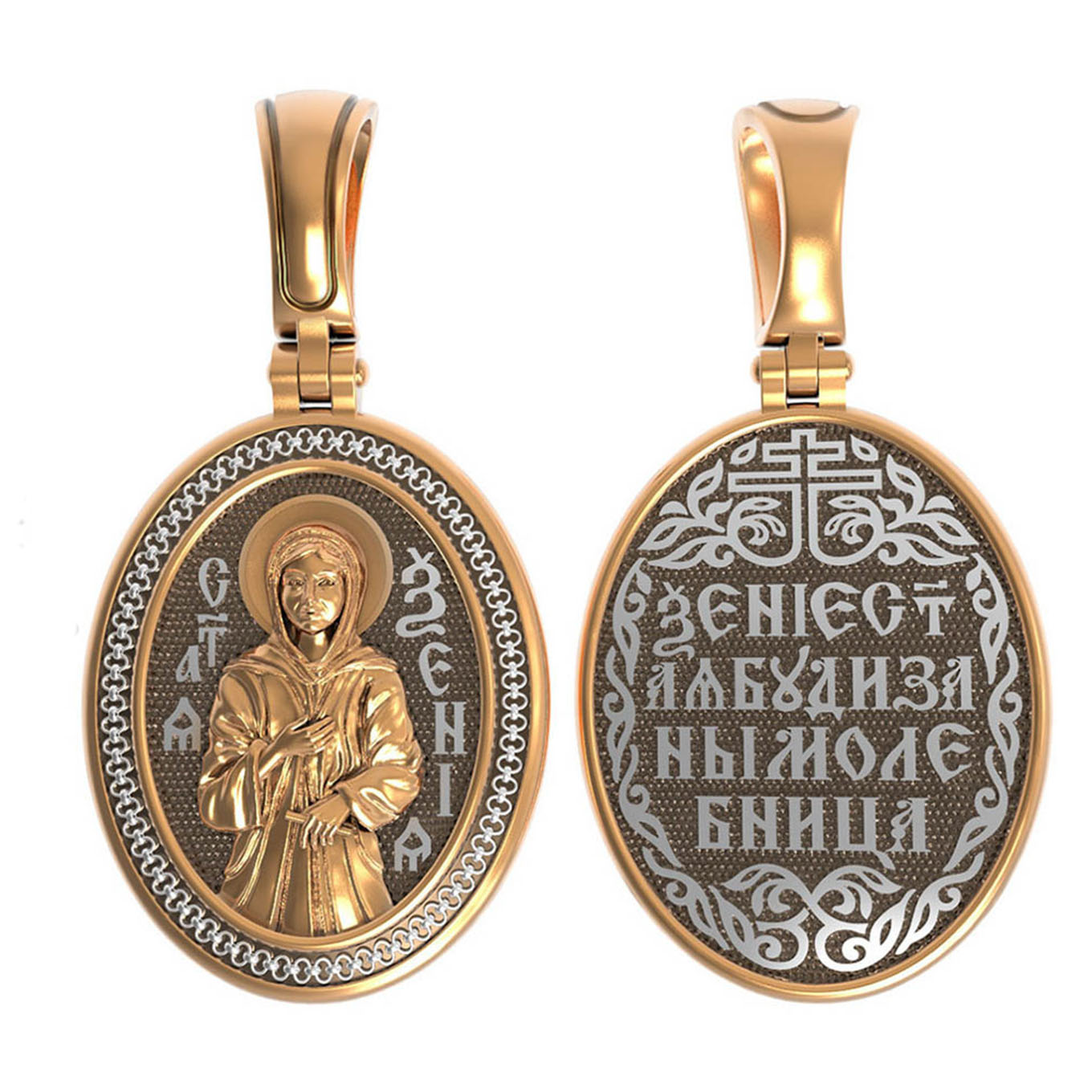 На лицевой стороне образка изображена Святая блаженная Ксения Петербургская, в миру Ксения Григорьевна Петрова.