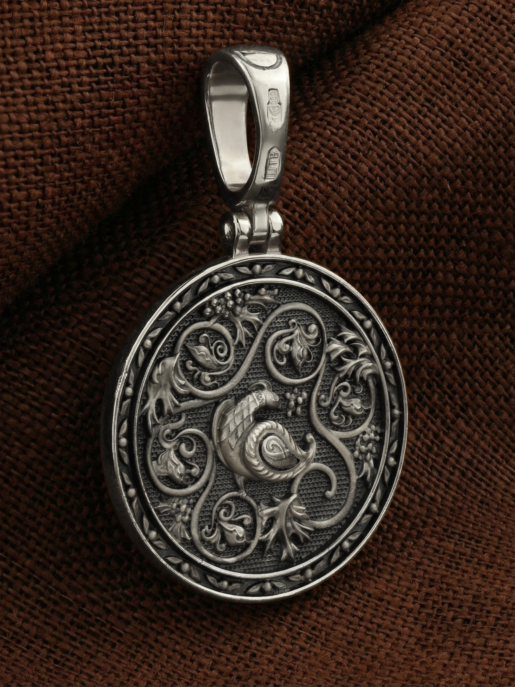 Оборот образка украшают растительные побеги, на которых сидят птицы. Это аллегория человеческих душ, которые населяют райский сад. Подобный символический образ появился в первые века христианства и на протяжении веков остается одним из самых распространенных орнаментальных мотивов Церкви.