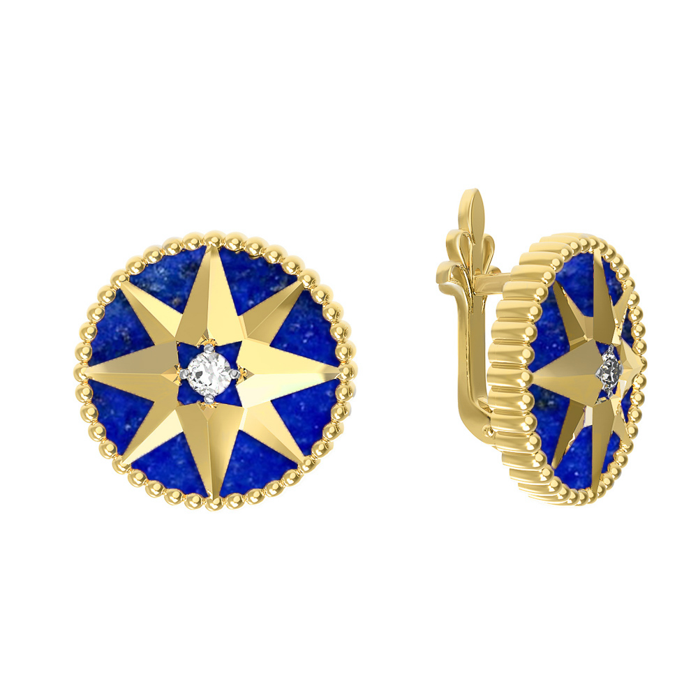 Серьги из лимонного золота c фианитом и лазуритом