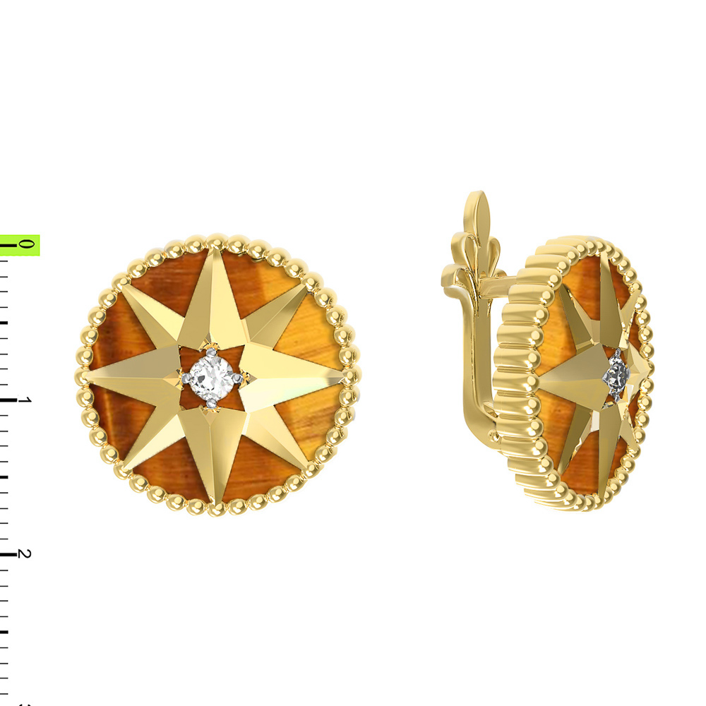 Серьги из лимонного золота c фианитом и тигровым глазом