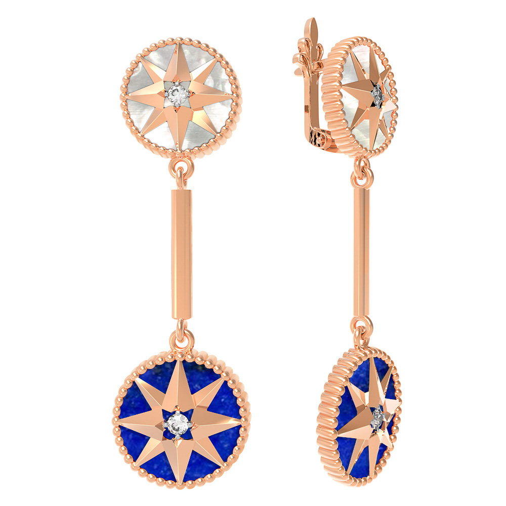 Серьги из золота c фианитом, лазуритом и перламутром