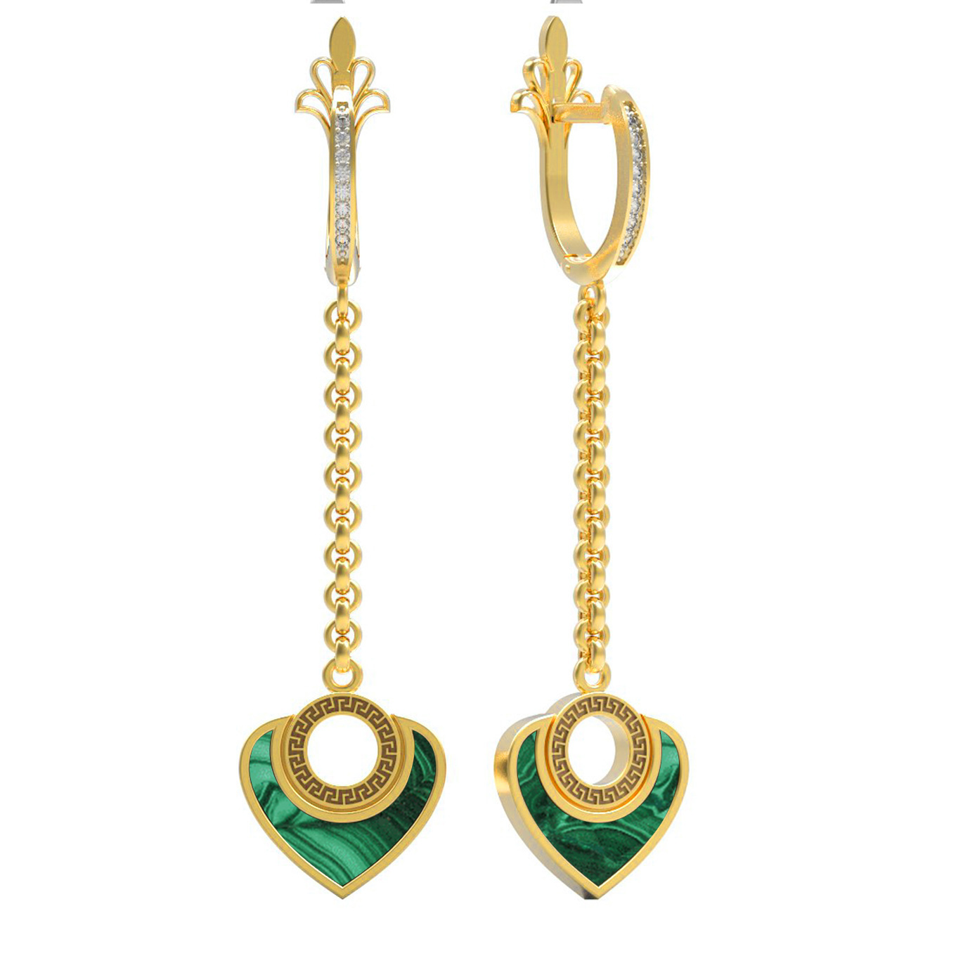 Подвеска из лимонного золота c фианитом, малахитом и перламутром