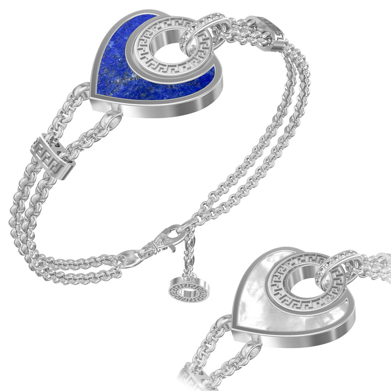 • Браслет из белого золота c фианитом, лазуритом и перламутром