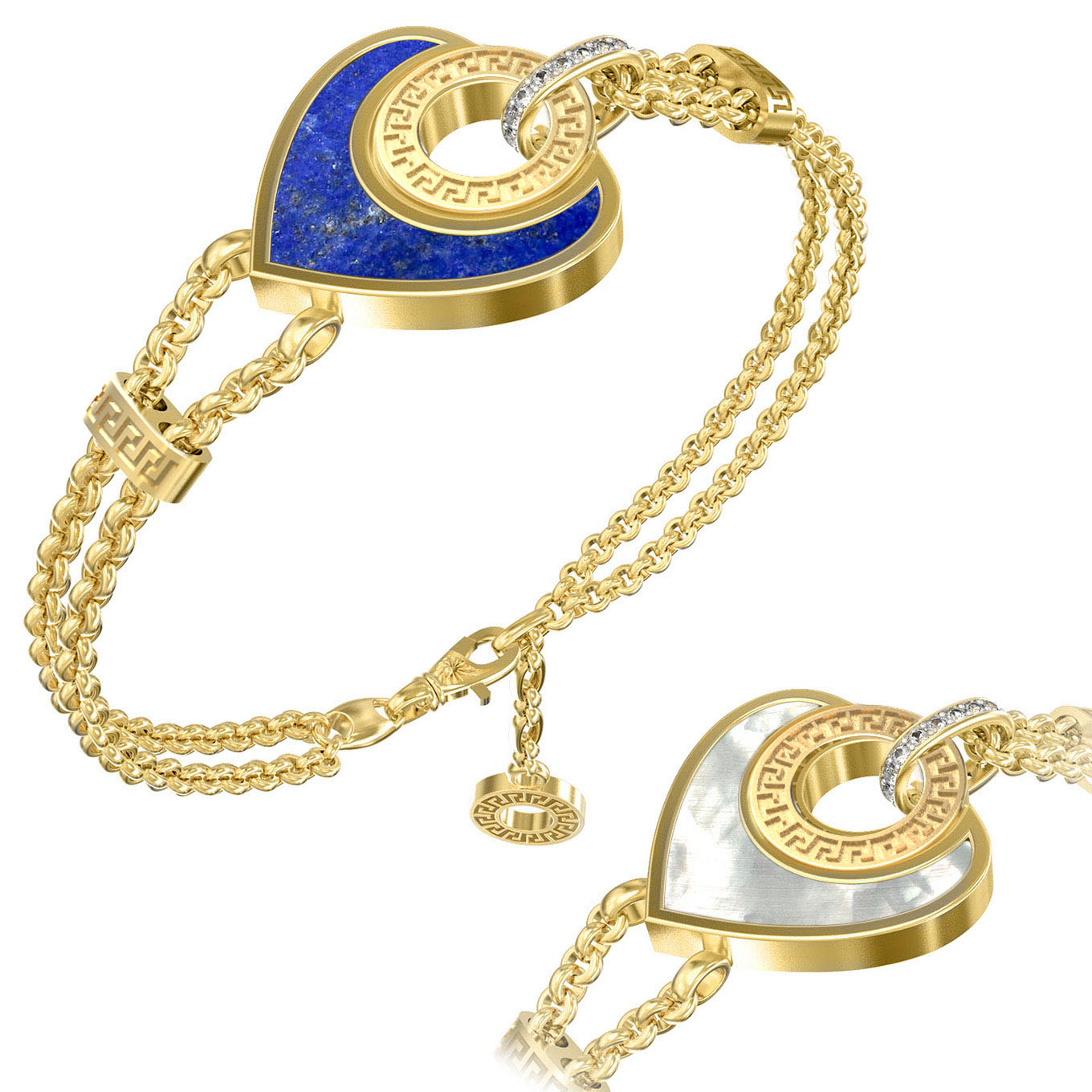 Браслет из лимонного золота c фианитом, лазуритом и перламутром