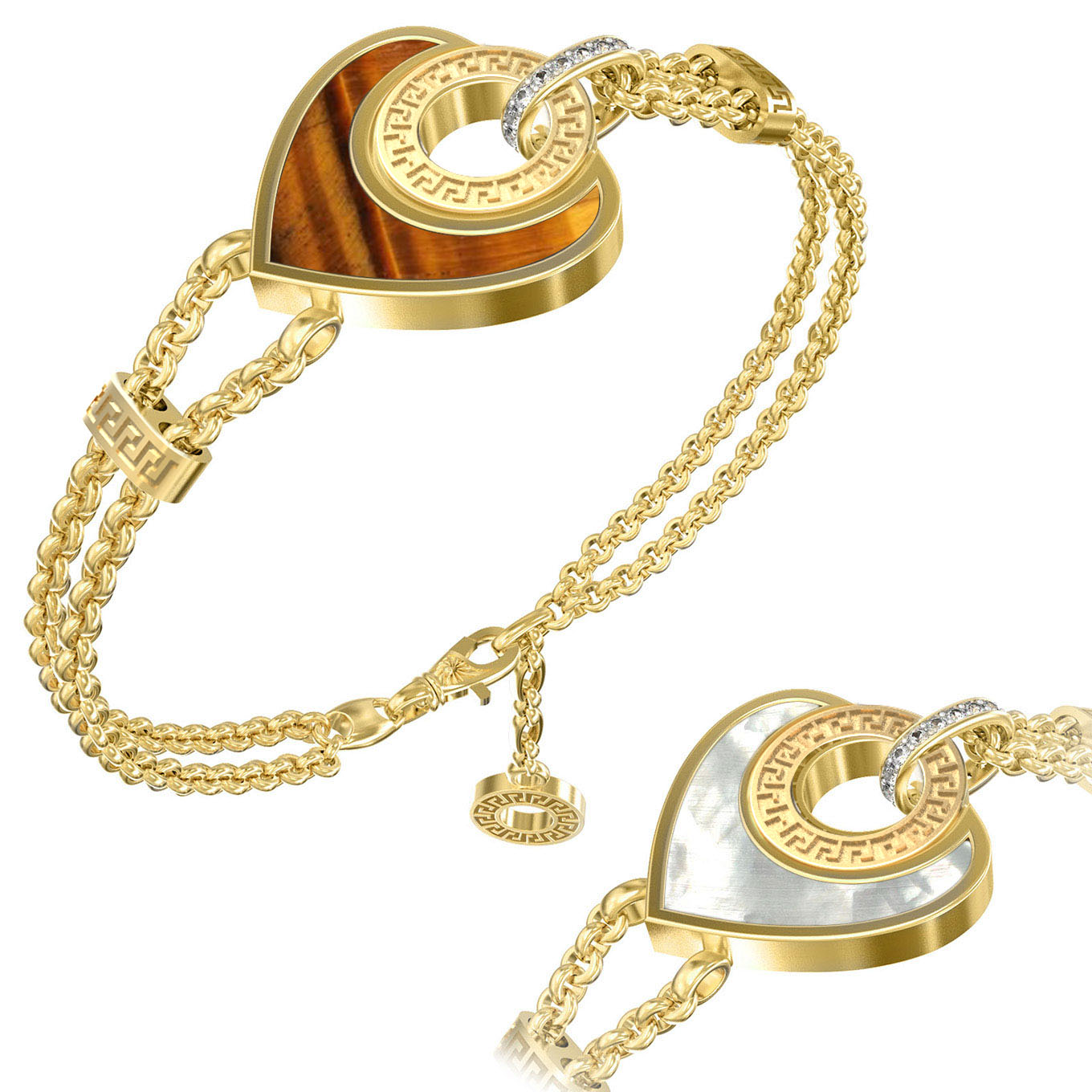 • Браслет из золота c фианитом, тигровым глазом и перламутром
