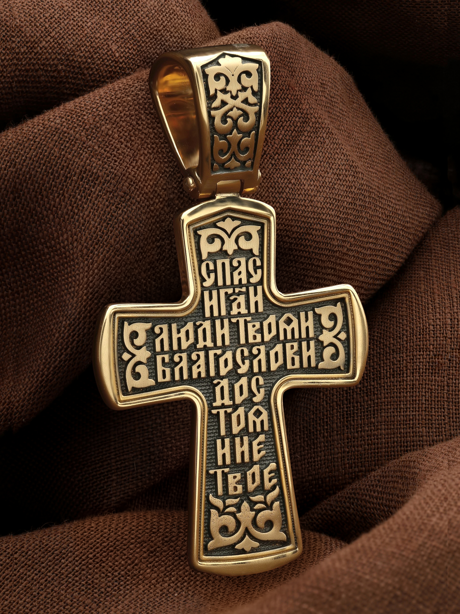 На оборотной стороне креста написан начальный стих тропаря Животворящему Кресту Господню: «Спаси, Господи, люди Твоя и благослови достояние твое…».