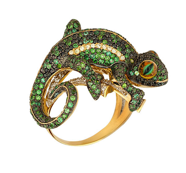 Кольцо из лимонного золота c эмалью и фианитом