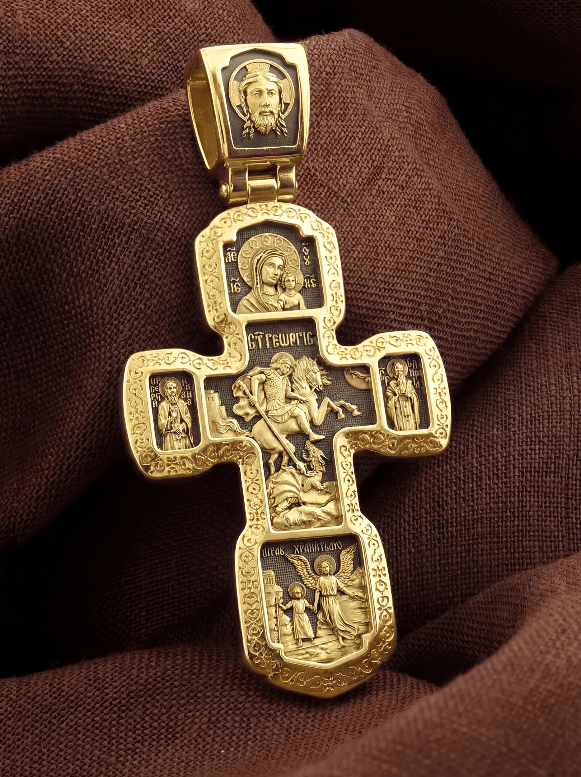 В центральной части оборота креста изображен Георгий Победоносец — покровителем и защитником воинов.