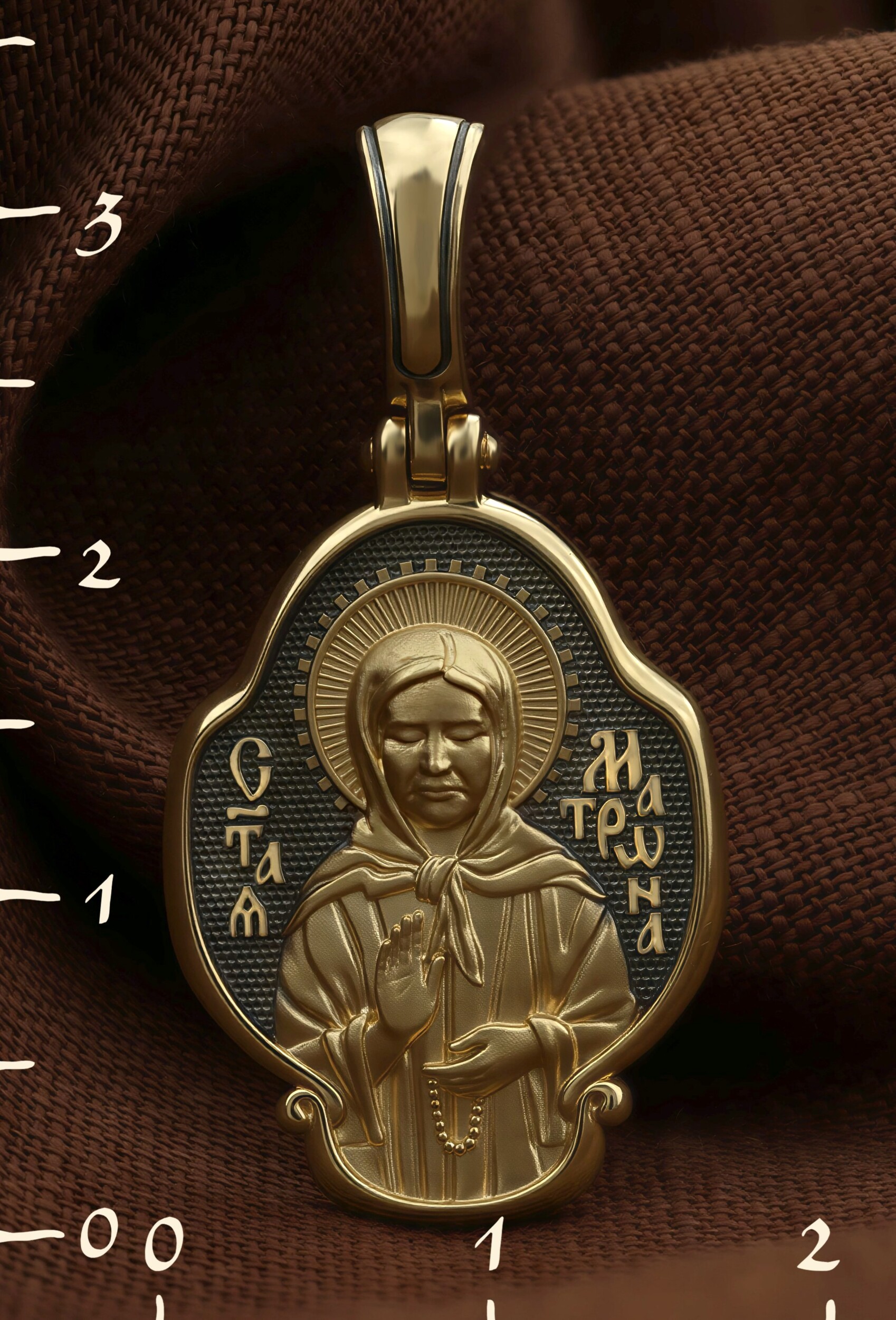 На лицевой стороне образка изображена Святая Матрона Московская.