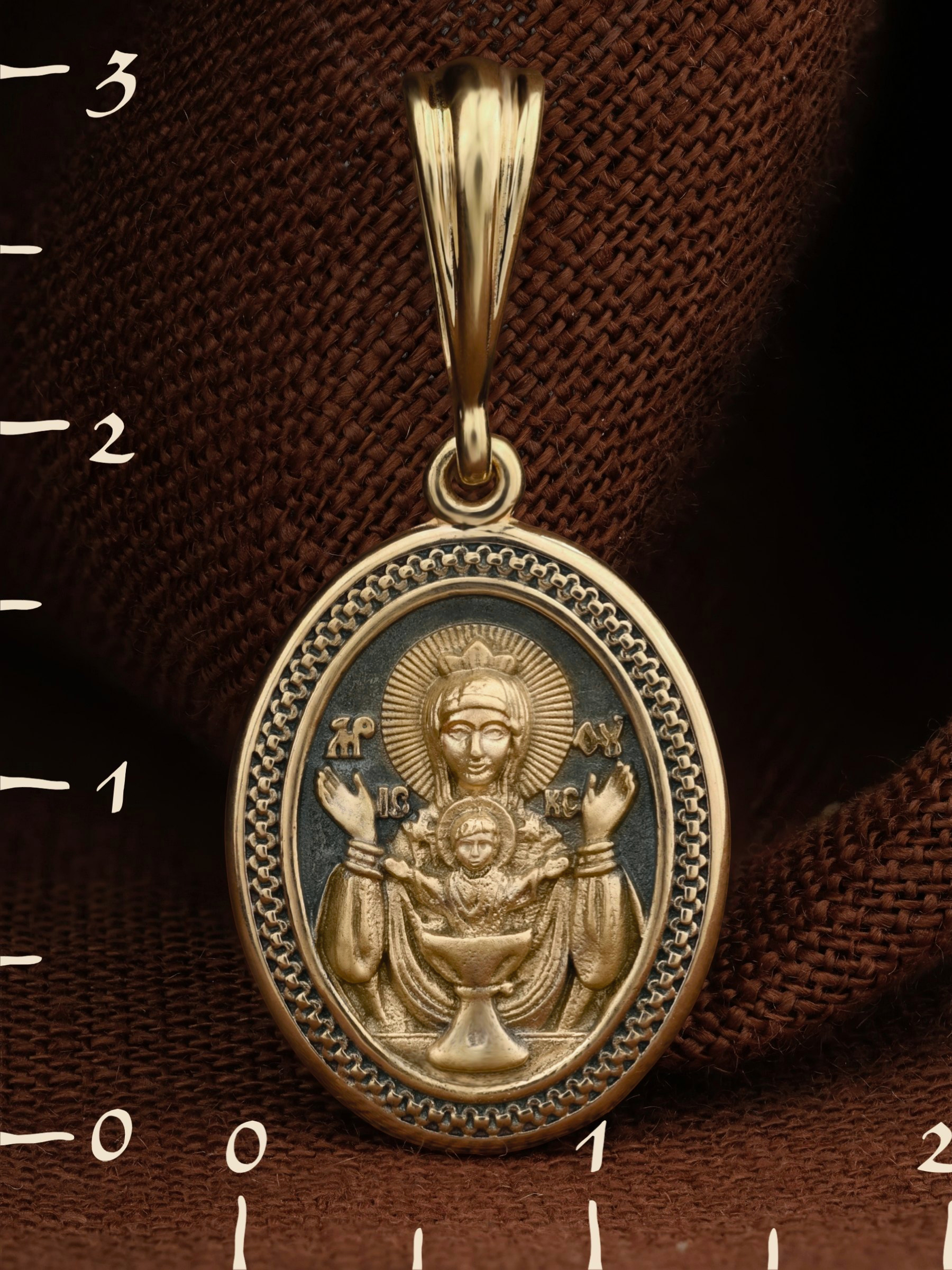 На лицевой части образка изображена икона Божией Матери «Неупиваемая чаша». Икона славится помощью в исцелении зависимостей, помогает людям обрести свободу от греховных страстей.
