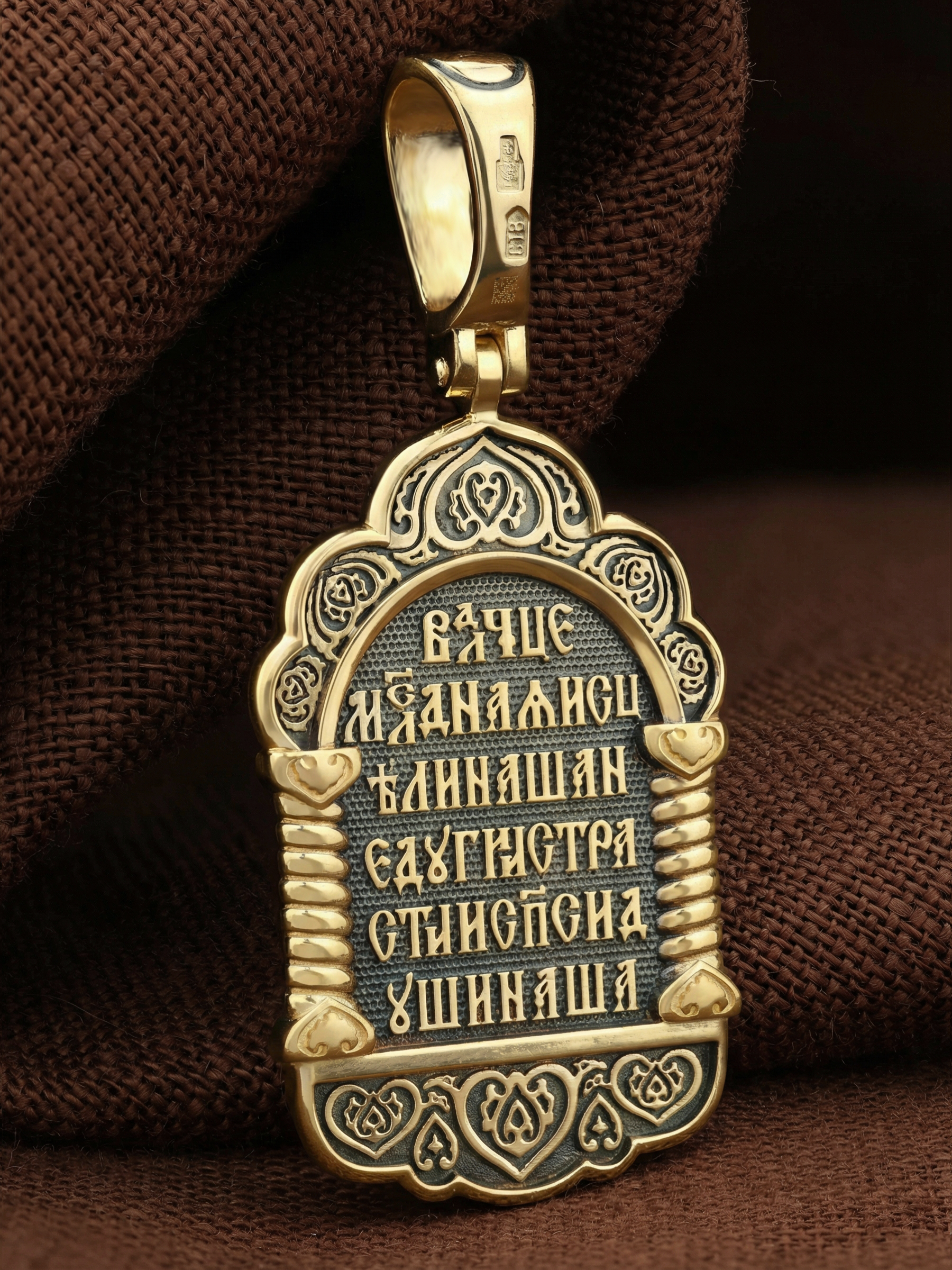 На лицевой части образка изображена икона Божией Матери «Неупиваемая чаша». Икона славится помощью в исцелении зависимостей, помогает людям обрести свободу от греховных страстей.