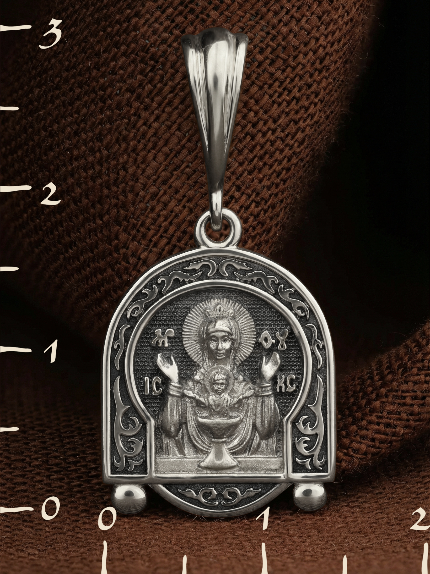 На лицевой части образка изображена икона Божией Матери «Неупиваемая чаша». Икона славится помощью в исцелении зависимостей, помогает людям обрести свободу от греховных страстей.