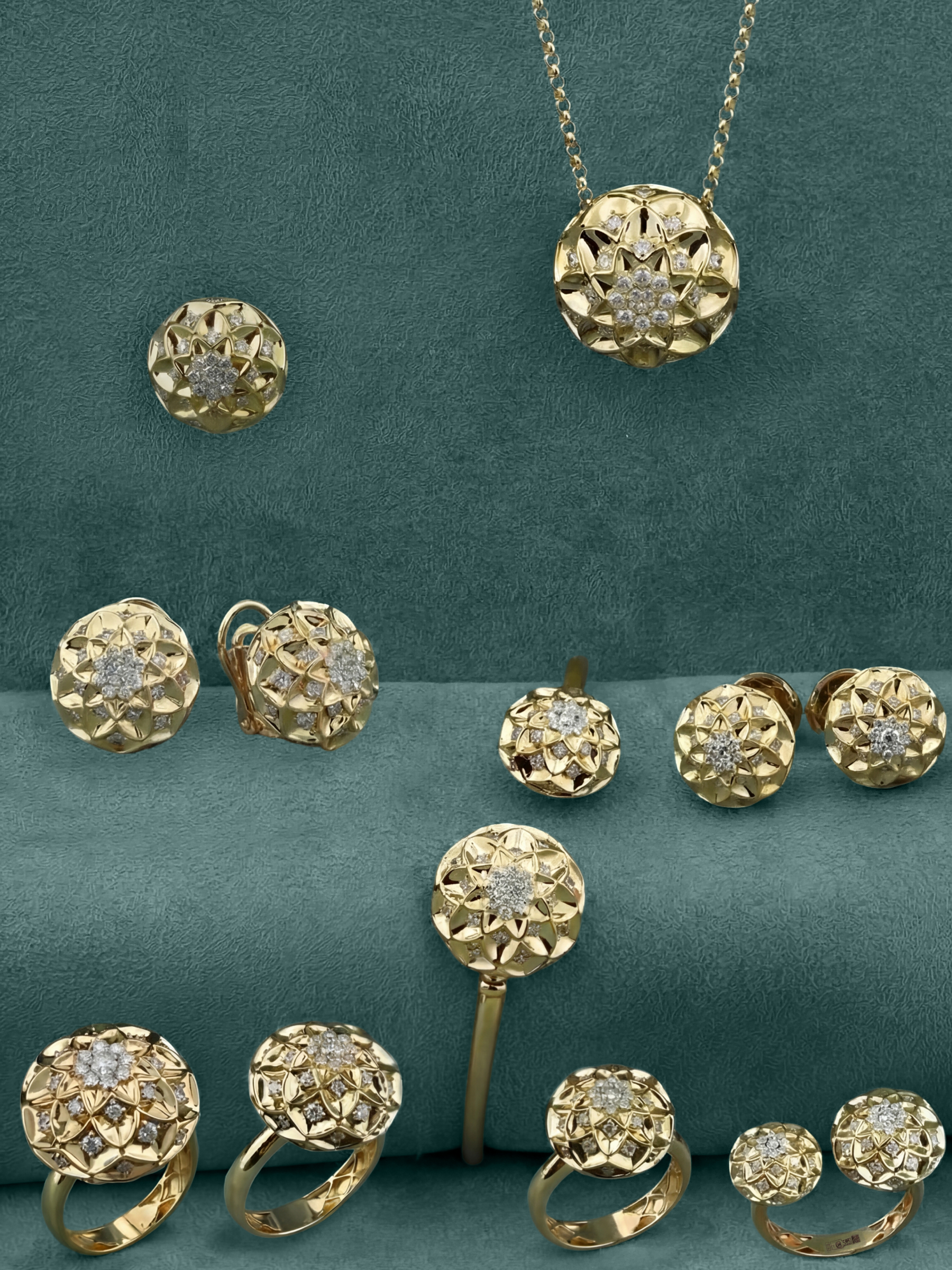 8 шт. (0.03 ct), 36 шт. (0.26 ct), 32 шт. (0.4 ct), 8 шт. (0.28 ct), 1 шт. (0.065 ct)