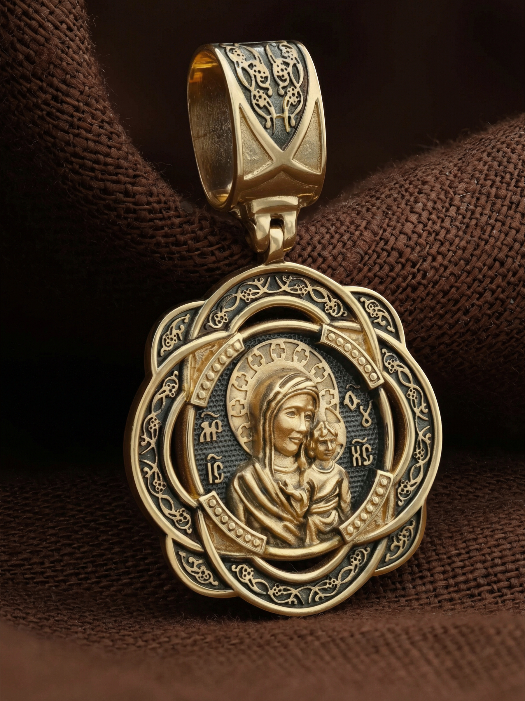На лицевой части образка изображена Казанская икона Пресвятой Богородицы — одна из самых почитаемых в России чудотворных икон Богородицы. Богословское значение Казанской иконы — указать верующим истинный Путь к спасению, который лежит через Христа. Только Божия Матерь имеет настолько сильное дерзновение к Спасителю, что может ходатайствовать перед Ним за всех верных. Именно этот образ дарится новой повенчанной паре, как хранитель очага и семейная реликвия. Молитва перед Казанской иконой Божьей Матери помогает во всех сложных случаях жизни, в болезнях, во всех печалях, невзгодах, скорбях. Уникальная история появления, чудеса, случившиеся по молитвам православных людей возле образа — все это делает Казанскую Богородицу особенной, среди тысяч других икон.