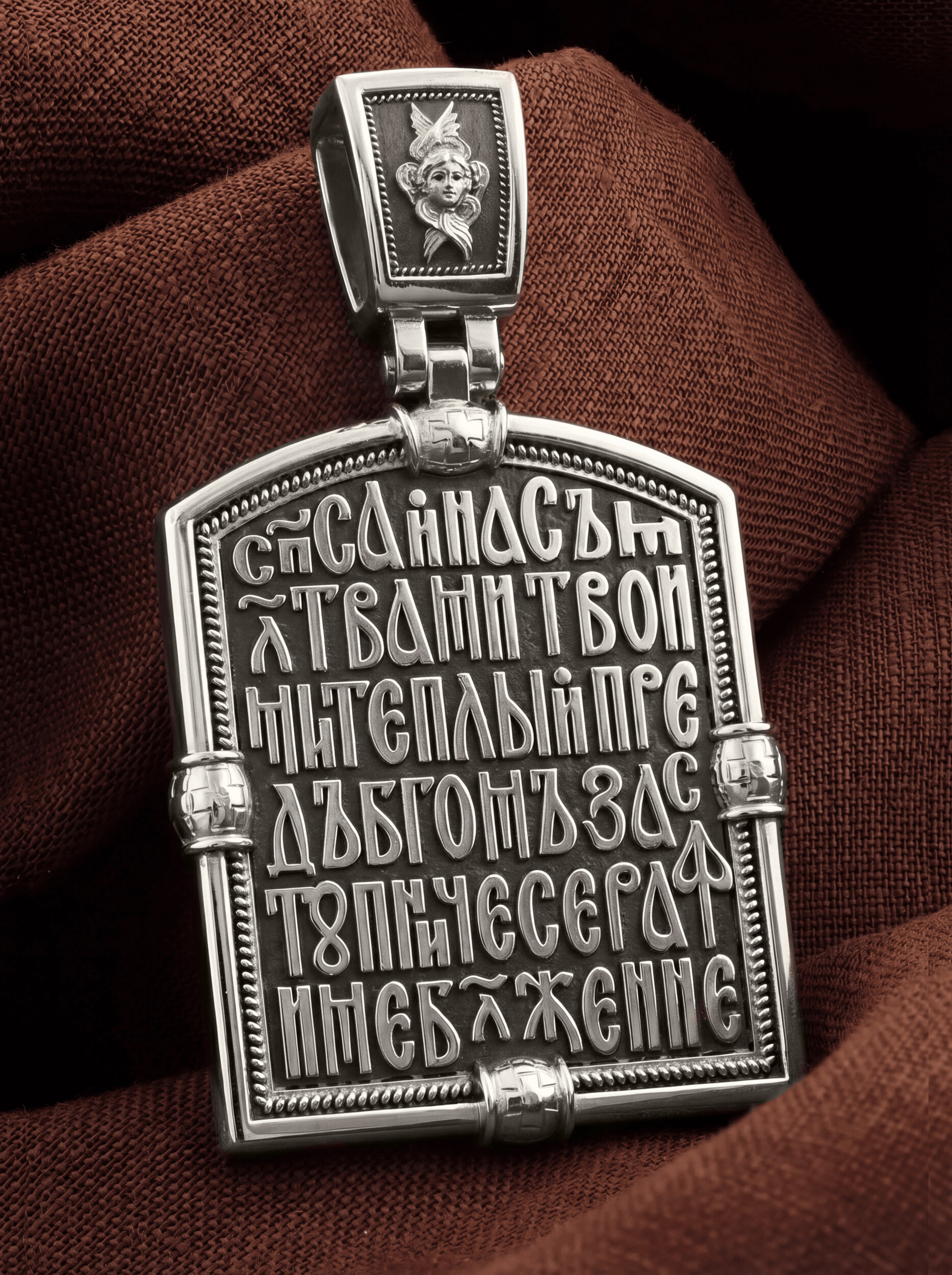 На лицевой стороне образка изображен Преподобный Серафим Саровский, самый великий русский святой XIX века. Преподобный Серафим почитается за особую милостивую любовь к людям и неоскудевающую помощь во всяких делах.