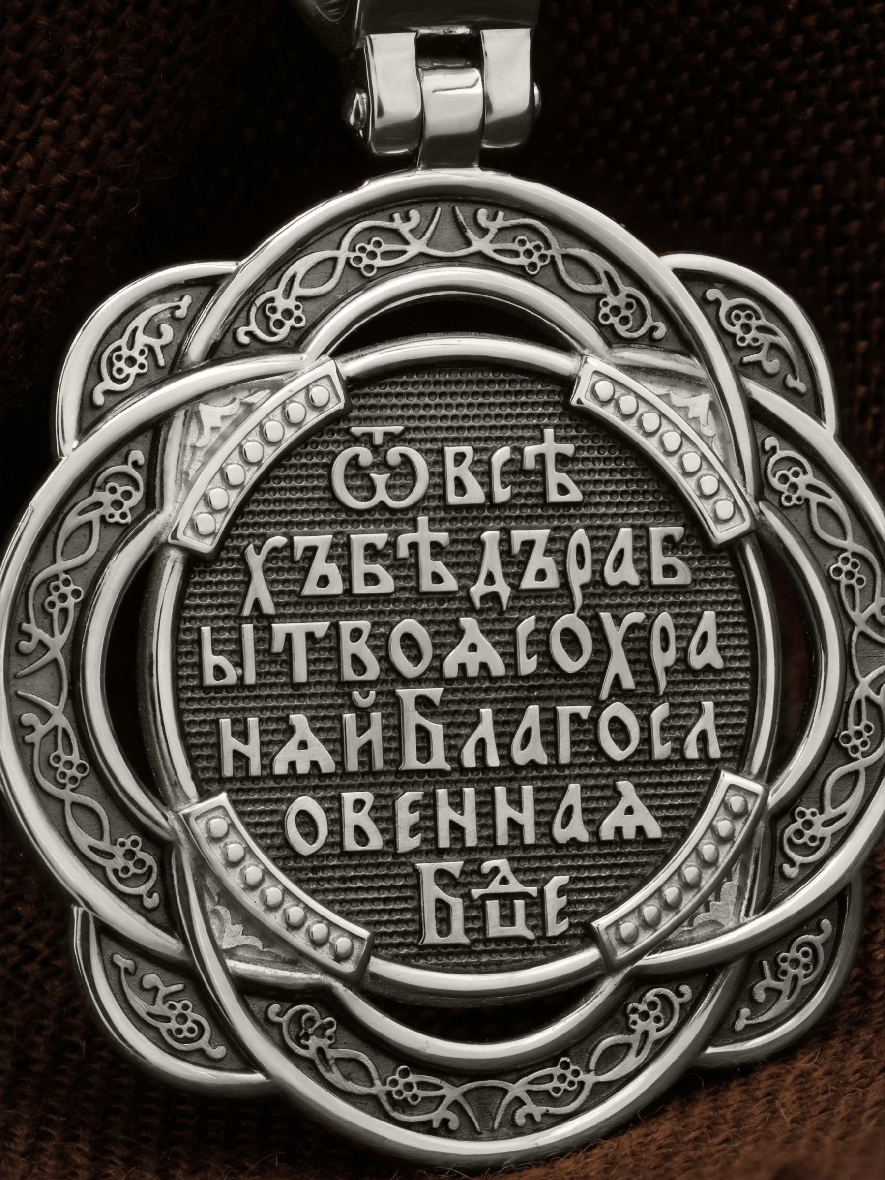 На лицевой части образка изображена Казанская икона Пресвятой Богородицы — одна из самых почитаемых в России. Икона была явлена на пожарище в Казани в 1579 году. В 1904 году святыня была похищена и уничтожена, но чудотворную силу иконы Богородица явила во многих ее списках. Молитва перед Казанской иконой Божьей Матери помогает во всех сложных случаях жизни, во всех печалях, невзгодах, скорбях.