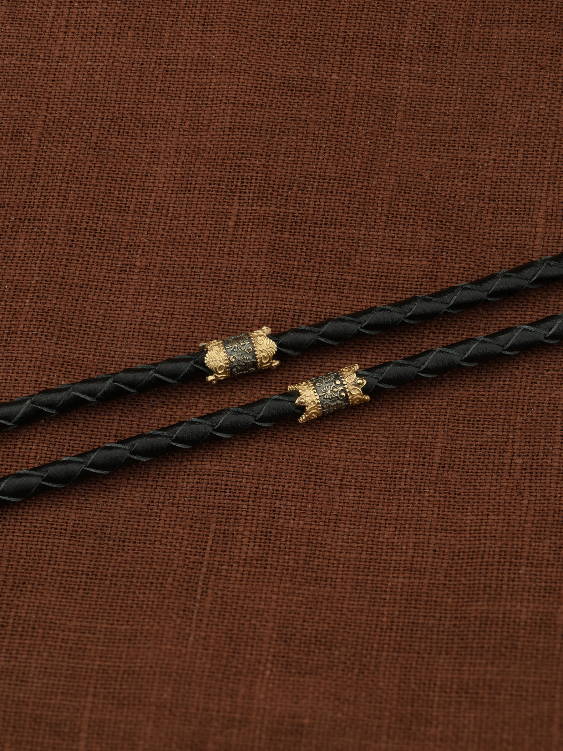 Гайтан из лимонного золота c кожаным шнурком