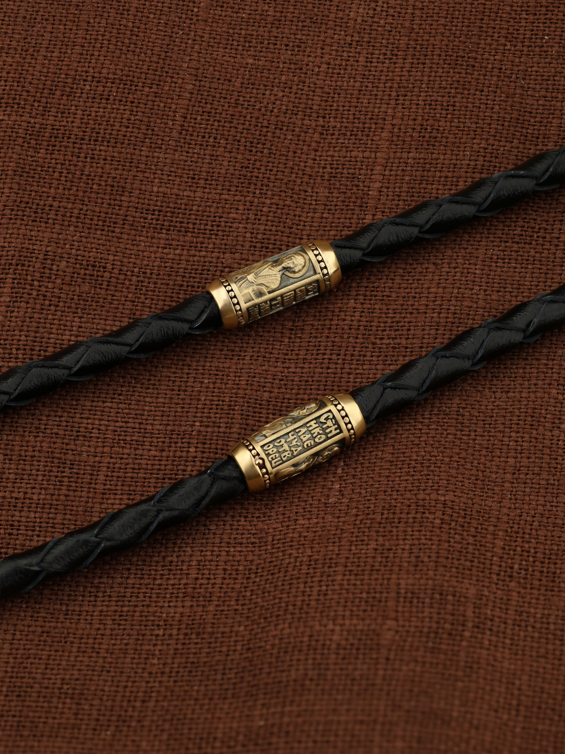 Гайтан из лимонного золота c кожаным шнурком