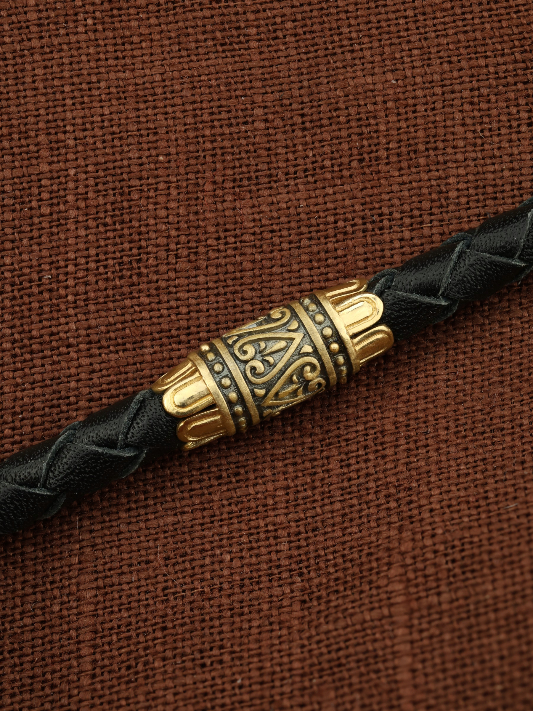 Гайтан из лимонного золота c кожаным шнурком