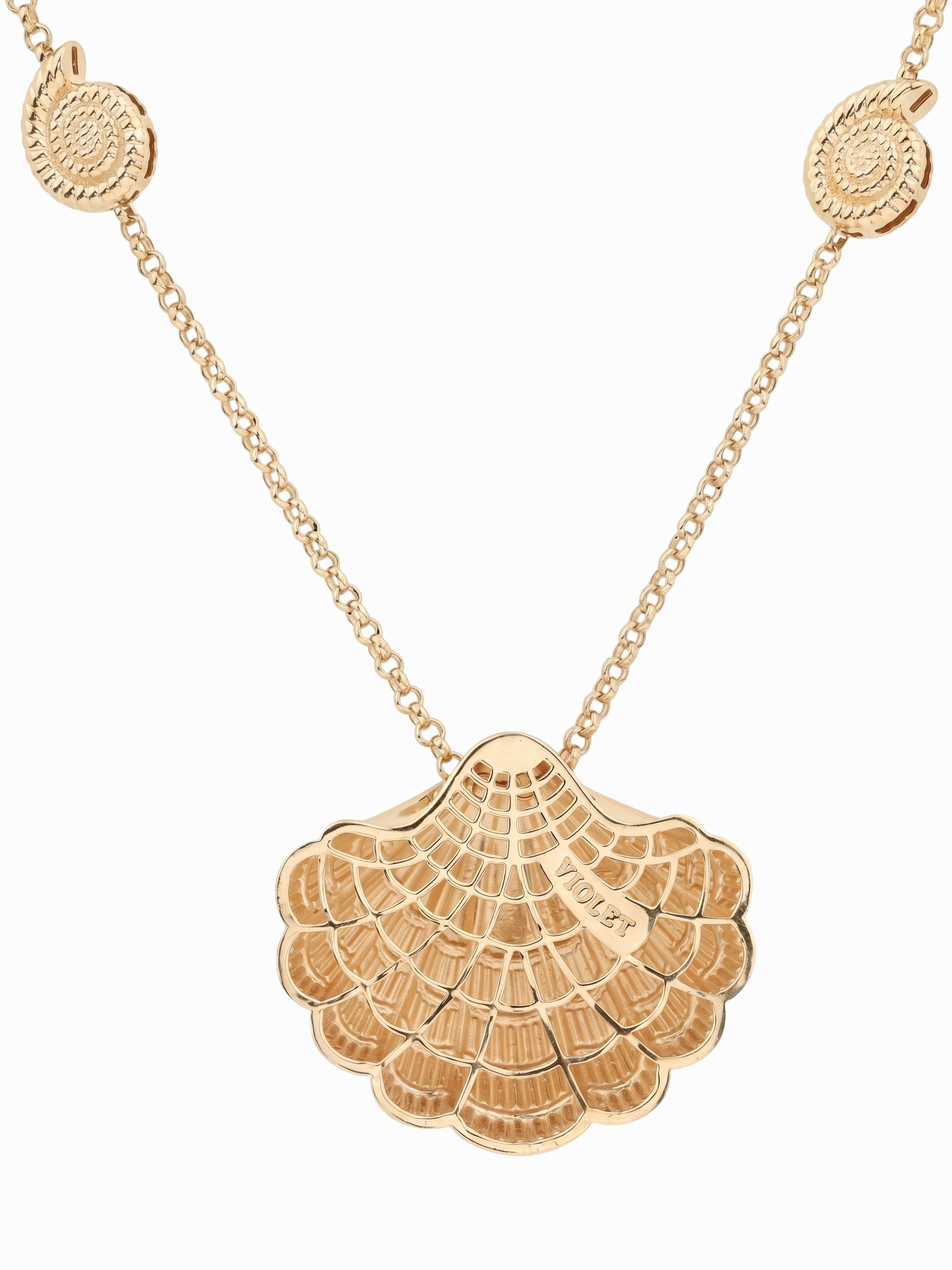 Колье из красного золота 585 пробы — это изысканное ювелирное украшение, которое станет центральным акцентом вашего образа. Данная модель входит в линейку Vioretty — Oceano и вдохновлена эстетикой морских глубин, воплощенной в благородном металле. Центральным элементом украшения выступает изящная подвеска в виде стилизованной раковины, детализация которой подчеркивает высокое мастерство исполнения. Дополнительный шарм изделию придают миниатюрные декоративные элементы в форме спиралевидных ракушек, гармонично интегрированные в цепочку.