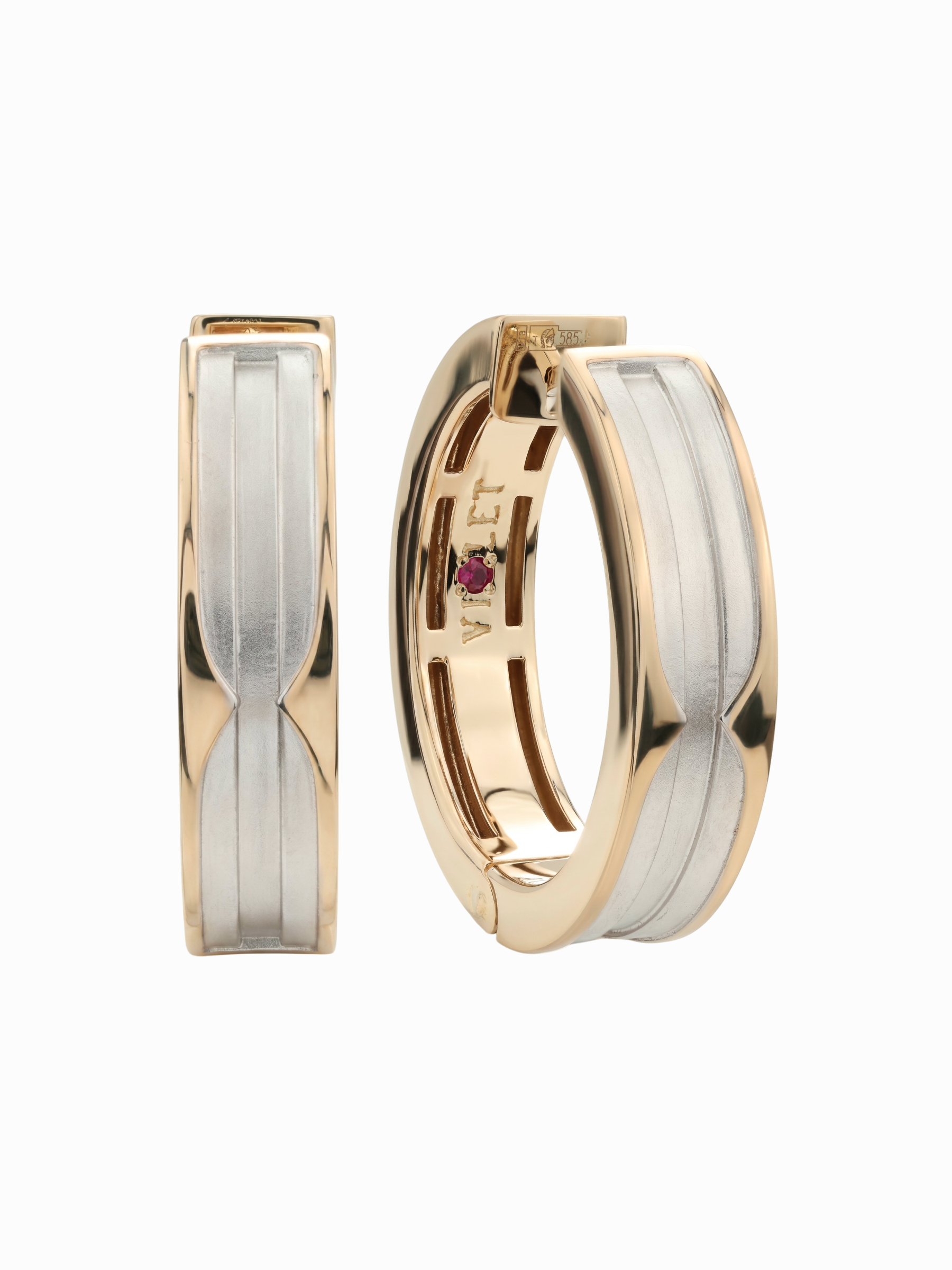 Всего в изделии использовано 2 красных рубина, которые придают украшению особый шарм, оставаясь при этом сдержанным акцентом. Дизайн серег универсален: они отлично подходят как для женщин, так и для мужчин, подчеркивая статус и безупречный вкус своего владельца. Надежный механизм крепления обеспечивает комфортное ношение в течение дня, а продуманная геометрия делает серьги выразительным дополнением любого образа.