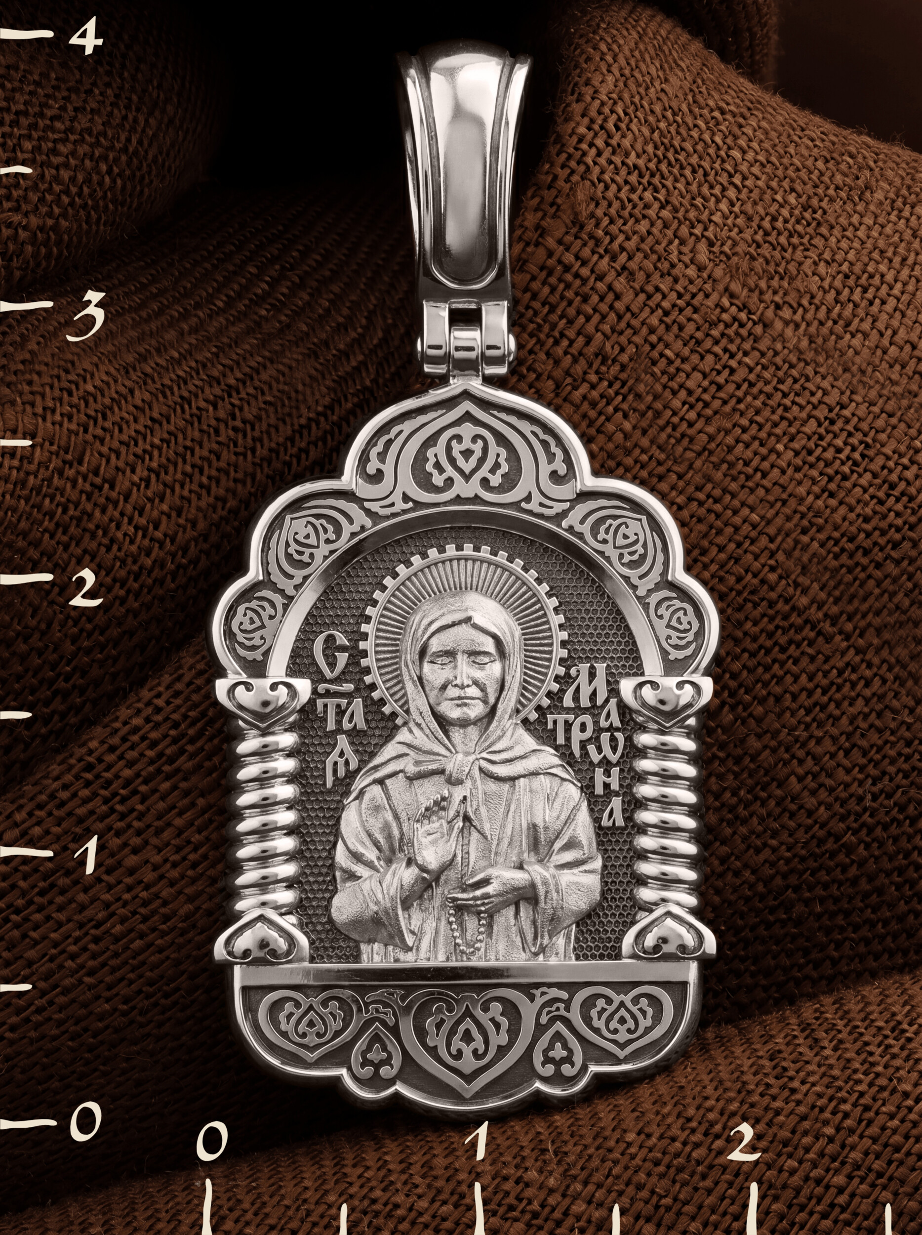 На лицевой стороне образка изображена Святая Матрона Московская.