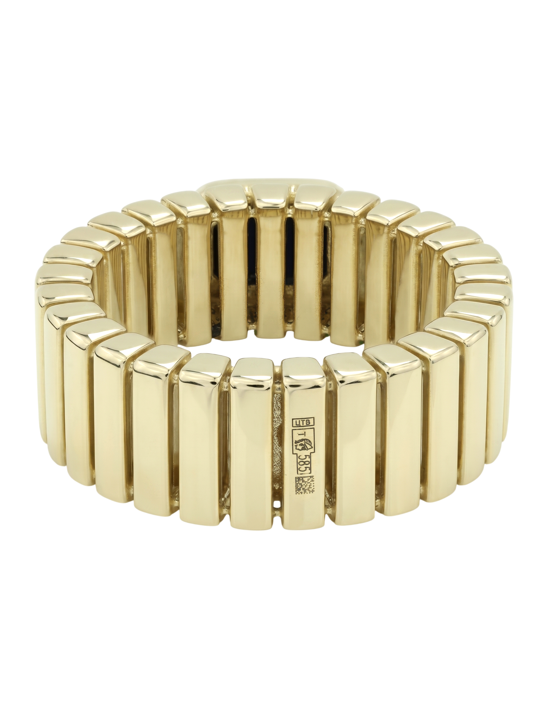 Кольцо из коллекции Vioretty — Geometria воплощает в себе современное прочтение архитектурной эстетики и лаконичной роскоши. Это статусное украшение выполнено из лимонного золота 585 пробы, чей благородный оттенок подчеркивает строгую и выразительную геометрию изделия. Массивный дизайн шинки, состоящий из повторяющихся рельефных звеньев, создает динамичный образ, который одинаково гармонично дополнит как женский, так и мужской стиль.