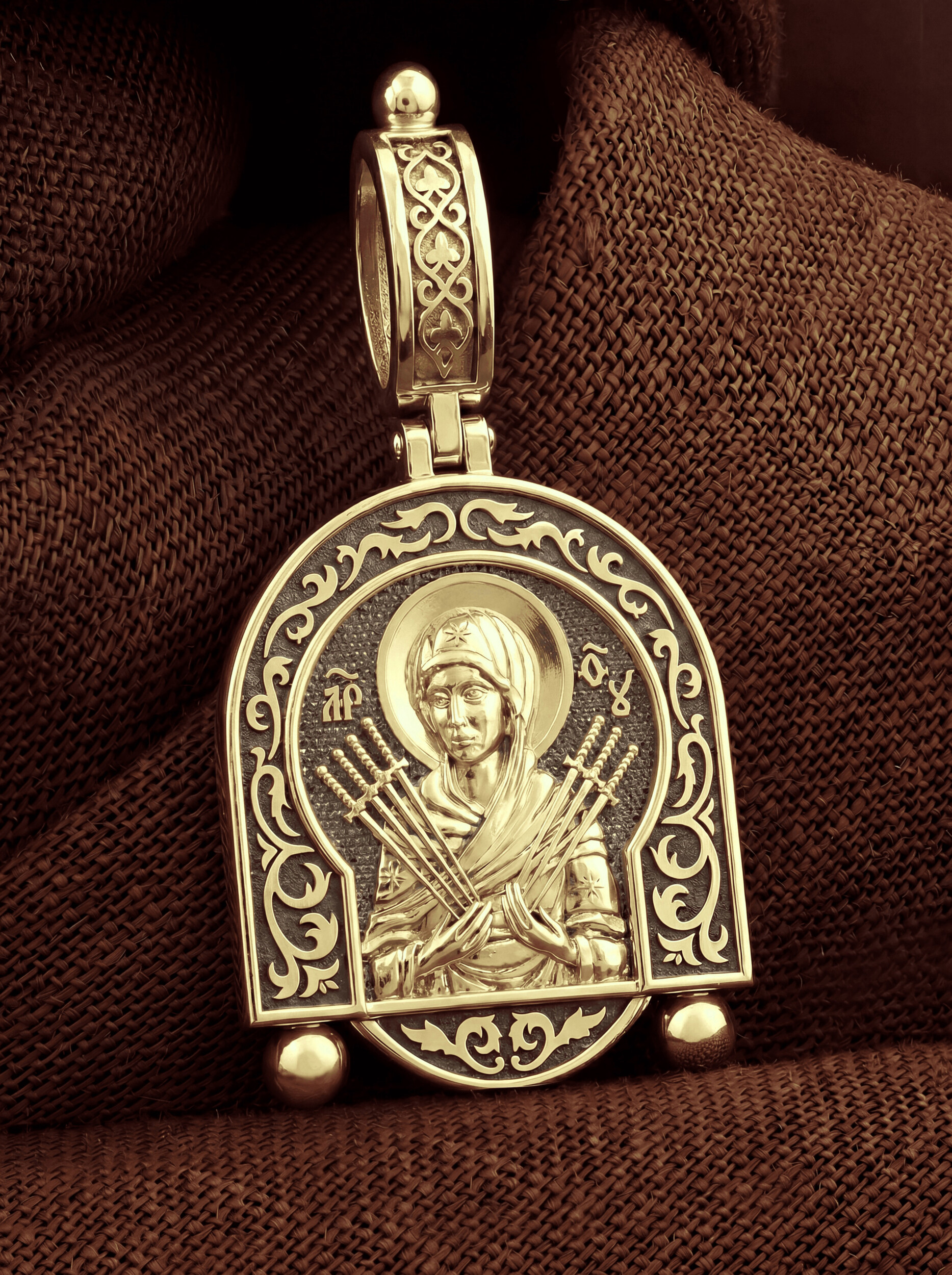 Пресвятая Богородица в Своей чудотворной иконе «Семистрельная» почитается как усмирительница враждебных чувств, защитница от злого умысла. Этой иконе молятся, чтобы остановить междоусобную брань, умилосердить сердца врагов, а также победить злые помыслы и недобрые чувства в собственном сердце. Все прибегающие к этой иконе с молитвою чувствуют, что при умягчении сердца облегчаются страдания не только душевные, но и телесные. Если же помолиться пред таким образом за своих врагов, то враждебные чувства уступают место милосердию, а разъедающая душу ненависть утихает.