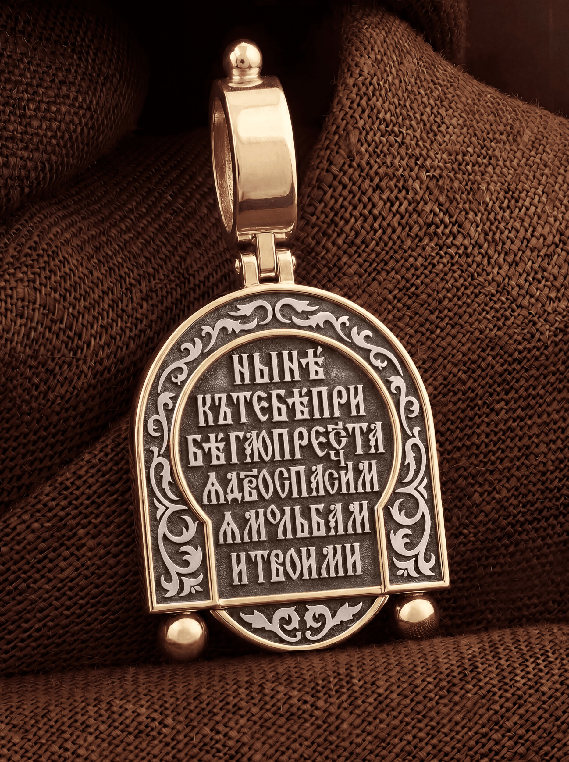 На обороте образка написана молитва Богородице: «Ныне к Тебе прибегаю, Пречистая Дево, спаси мя мольбами Твоими».