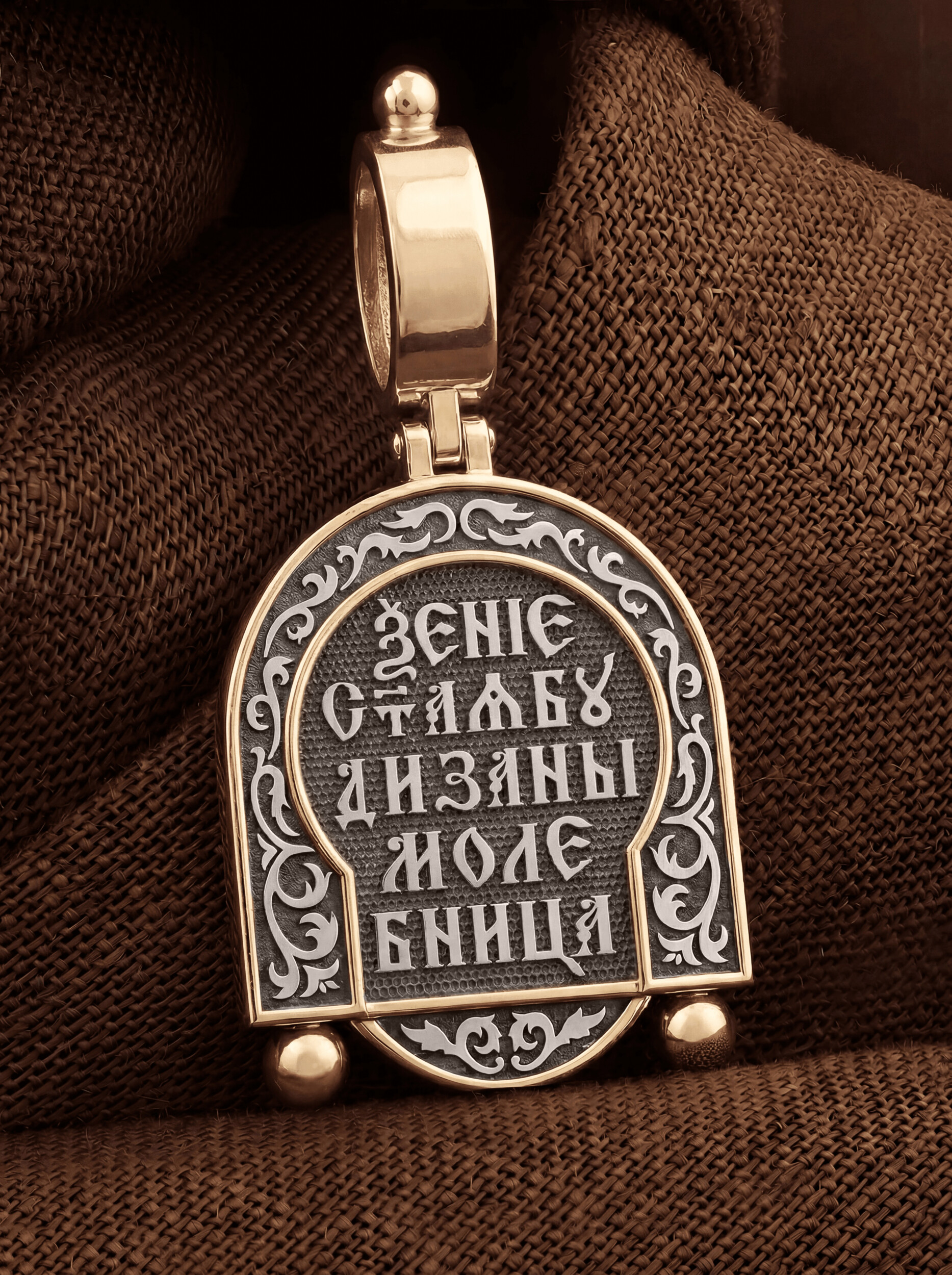 На оборотой стороне образка написана молитва: «Ксения святая, буди за нас молебница».