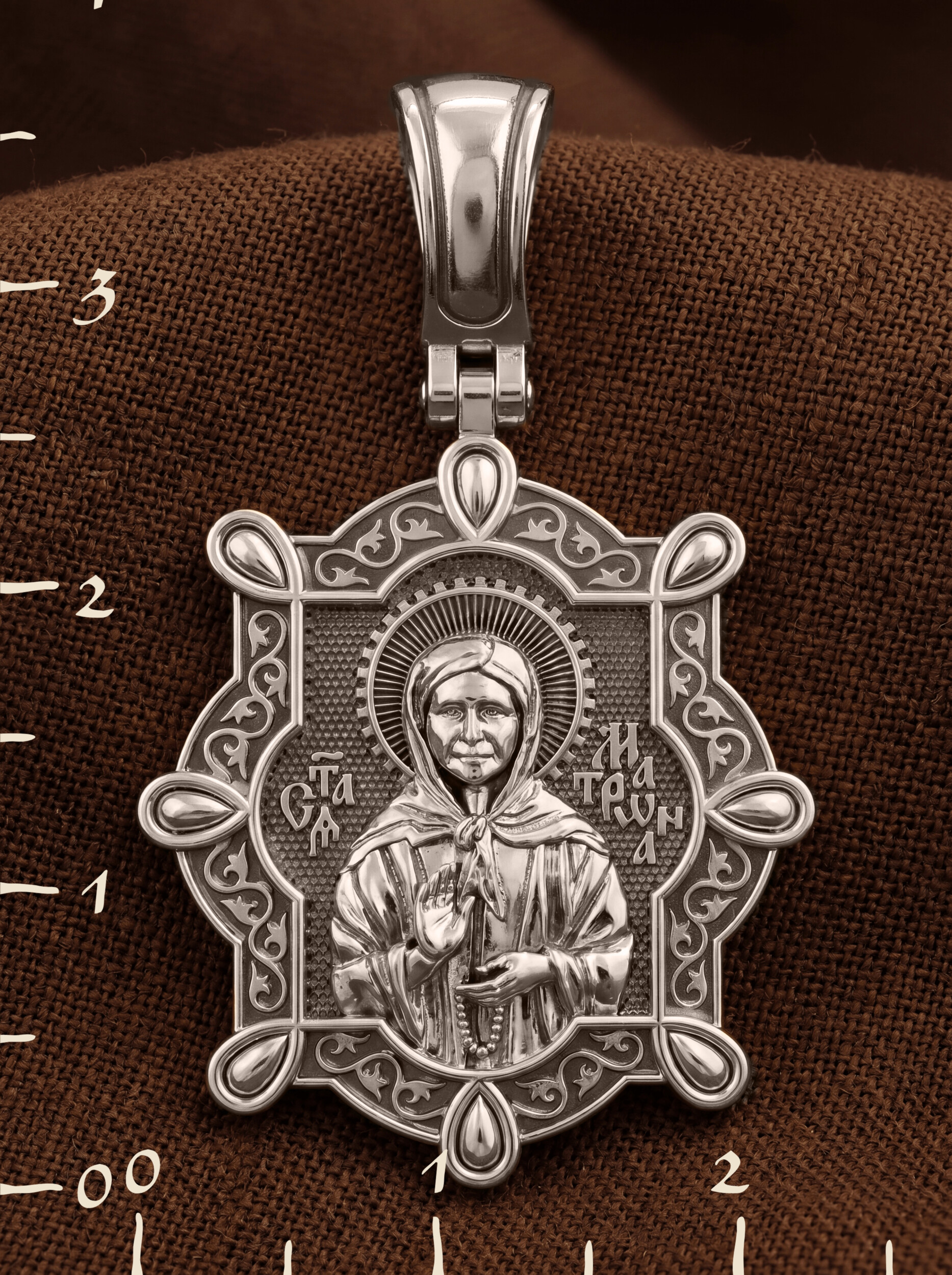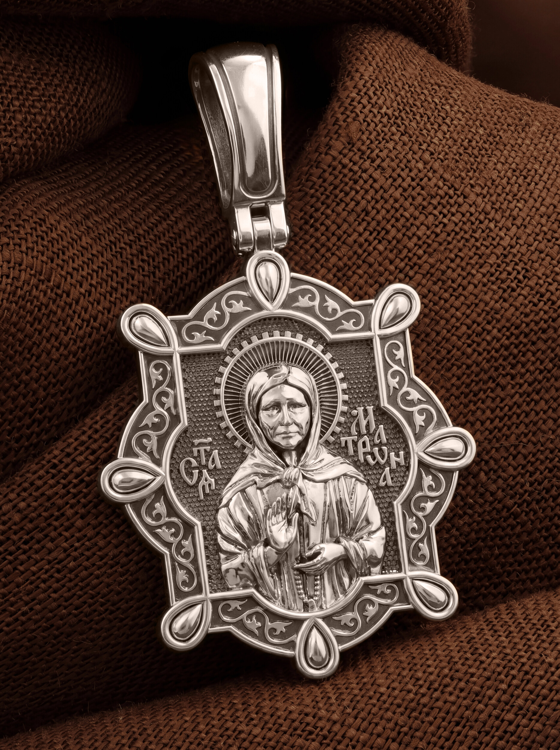 На лицевой стороне образка изображена Святая Матрона Московская.