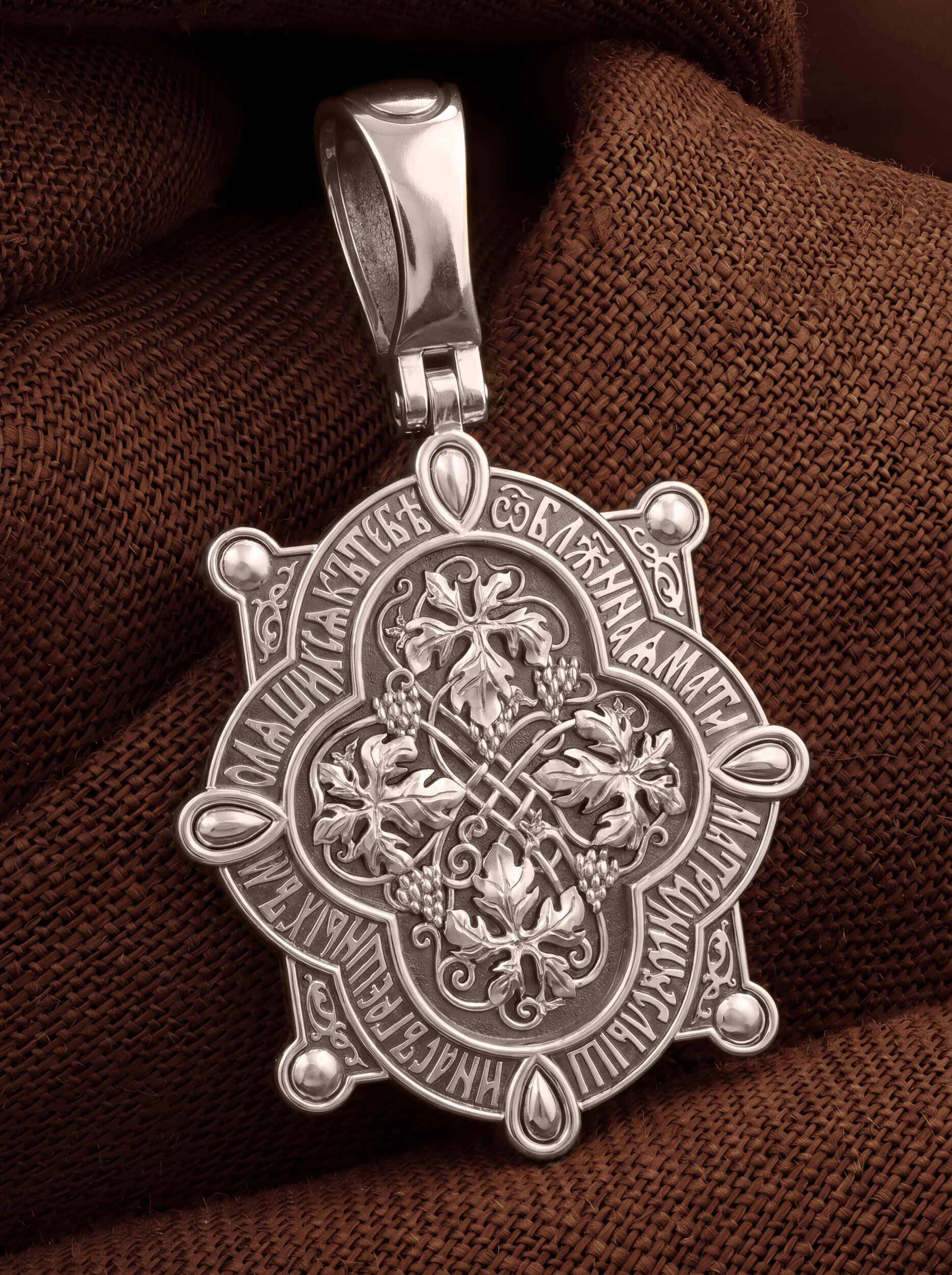 На оборотной стороне изображена виноградная лоза — символы церкви и евхаристии. «Я есмь лоза, — говорил Иисус Христос Своим ученикам, — а вы ветви; кто пребывает во Мне, и Я в нем, тот приносит много плода» (Ин. 15, 5), «Я есмь истинная виноградная лоза, а Отец Мой — виноградарь». Вокруг образка написана молитва: «О блаженная мати Матроно, услыши насгрешных, молящихся к Тебе».