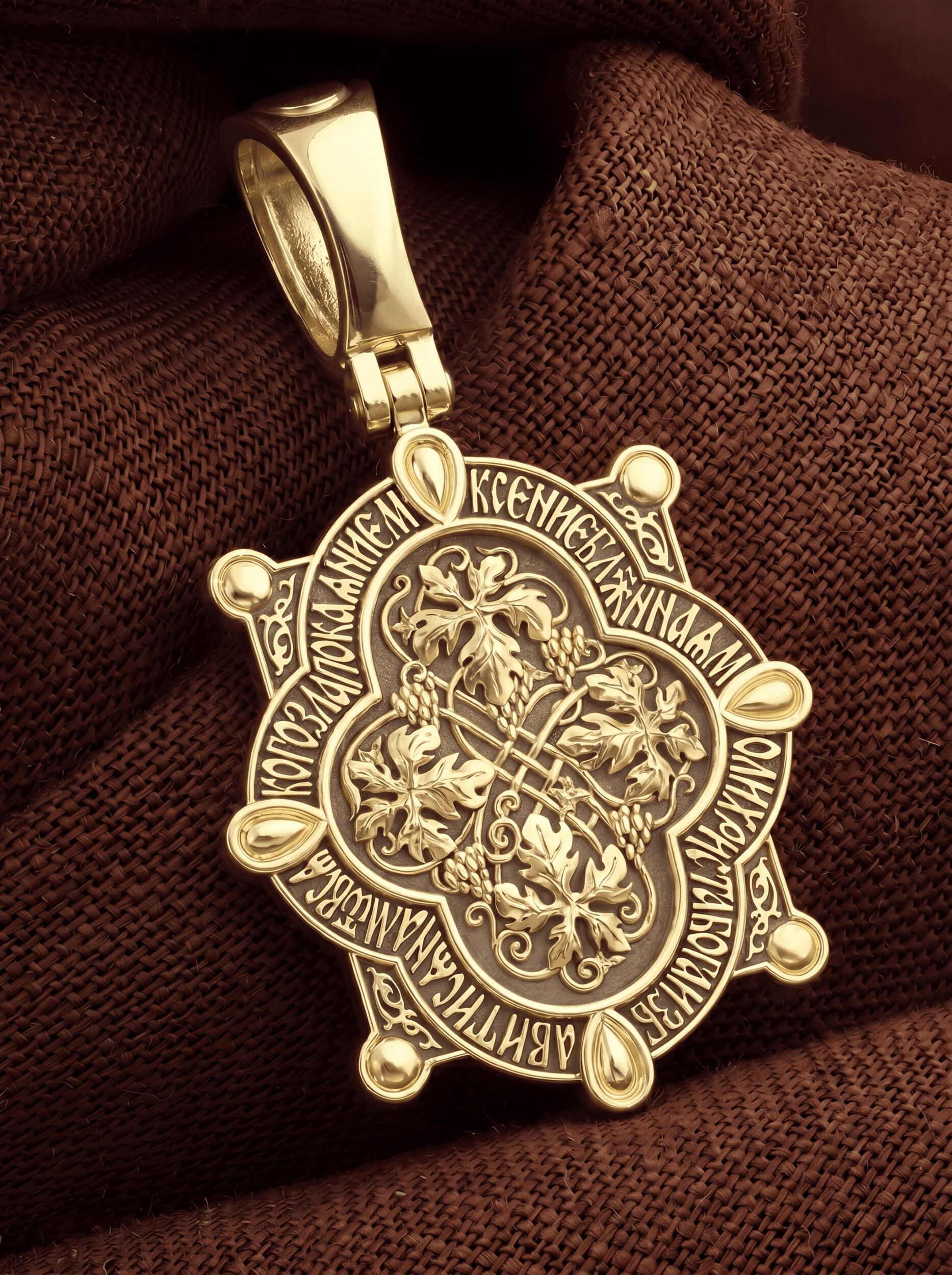 На оборотной стороне изображена виноградная лоза — символы церкви и евхаристии. «Я есмь лоза, — говорил Иисус Христос Своим ученикам, — а вы ветви; кто пребывает во Мне, и Я в нем, тот приносит много плода» (Ин. 15, 5), «Я есмь истинная виноградная лоза, а Отец Мой — виноградарь». Вокруг образка написана молитва: «Ксение блаженная, моли Христа Бога избавитися нам от всякаго зла покаянием».