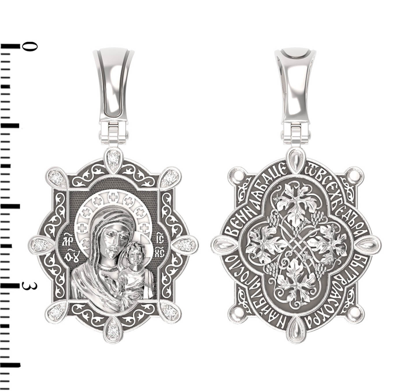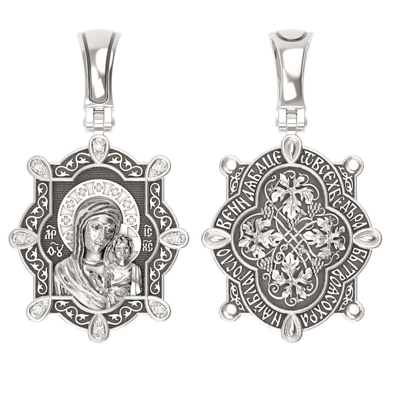 На лицевой части образка изображена Казанская икона Пресвятой Богородицы — одна из самых почитаемых в России. Икона была явлена на пожарище в Казани в 1579 году. В 1904 году святыня была похищена и уничтожена, но чудотворную силу иконы Богородица явила во многих ее списках. Молитва перед Казанской иконой Божьей Матери помогает во всех сложных случаях жизни, во всех печалях, невзгодах, скорбях.