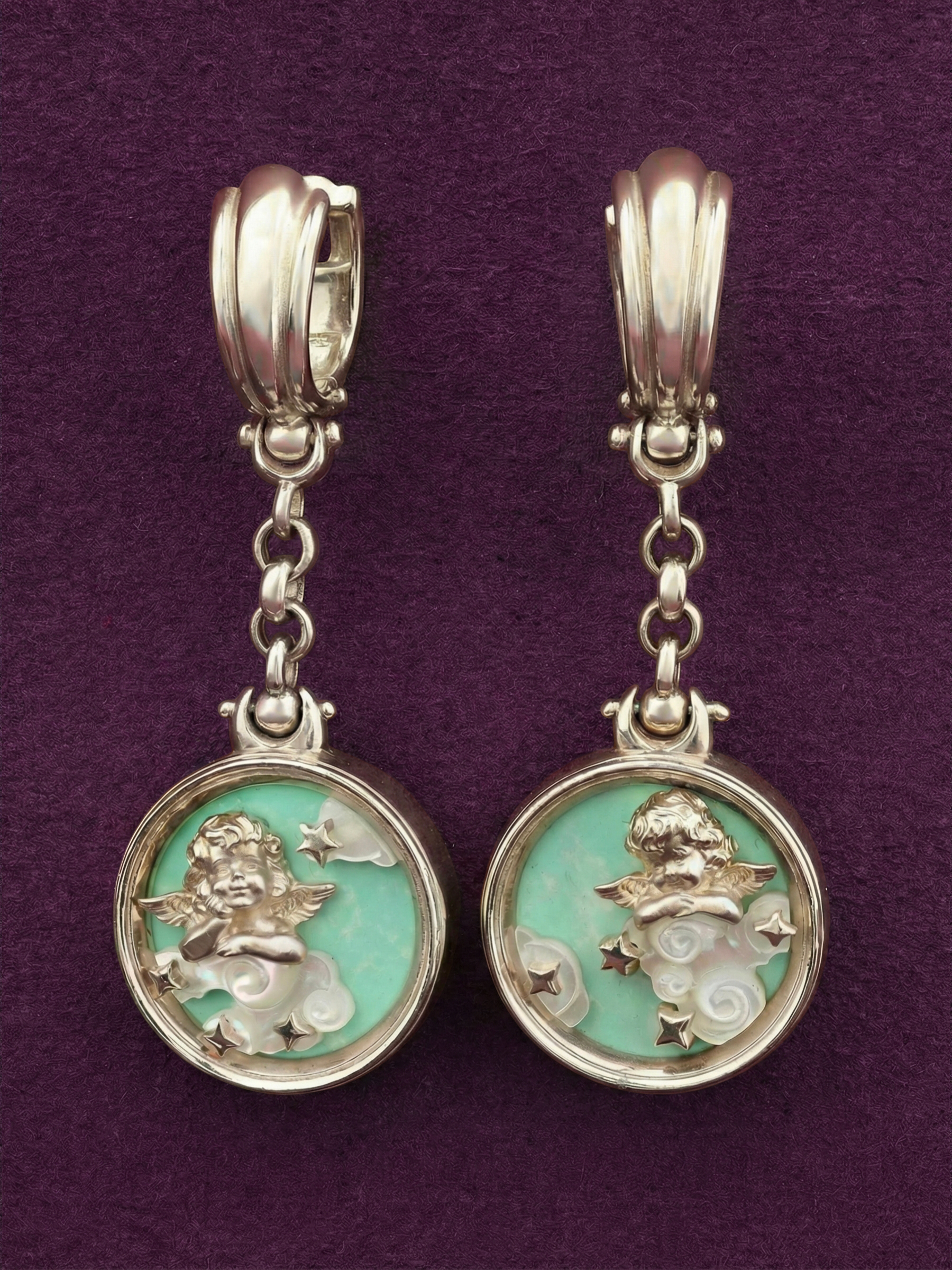 Серьги из белого золота c бирюзой и перламутром