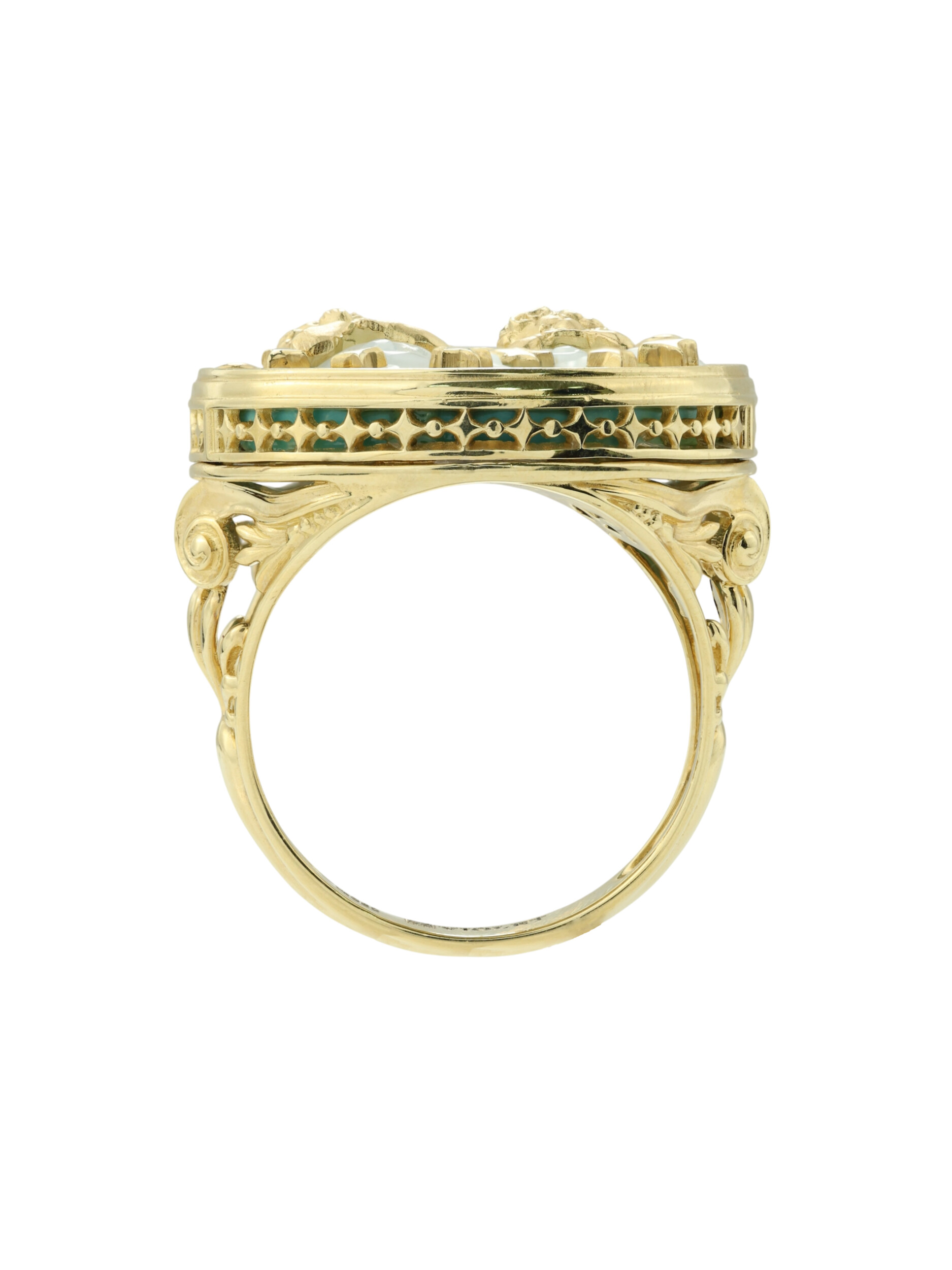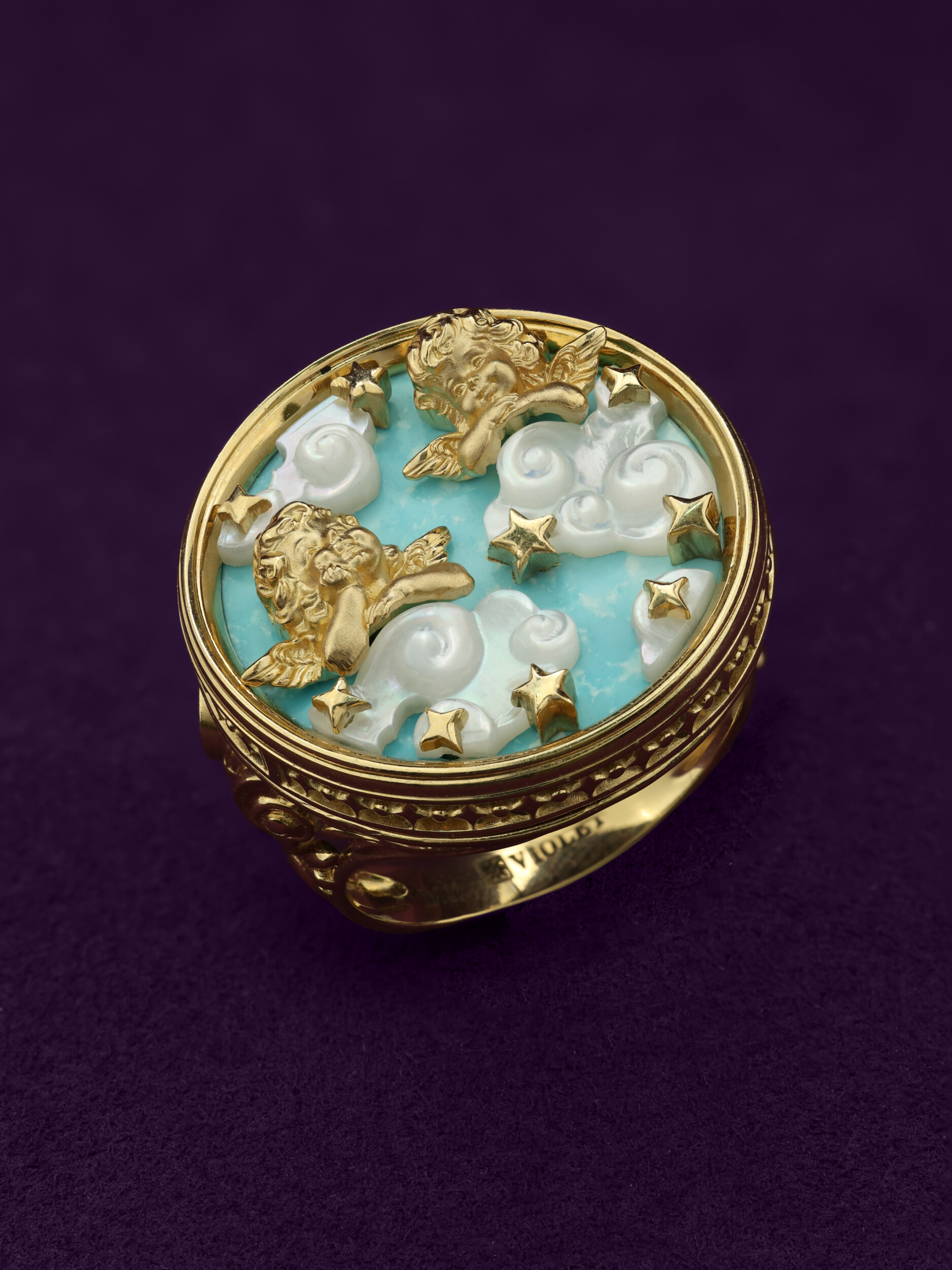 Кольцо из лимонного золота c бирюзой и перламутром