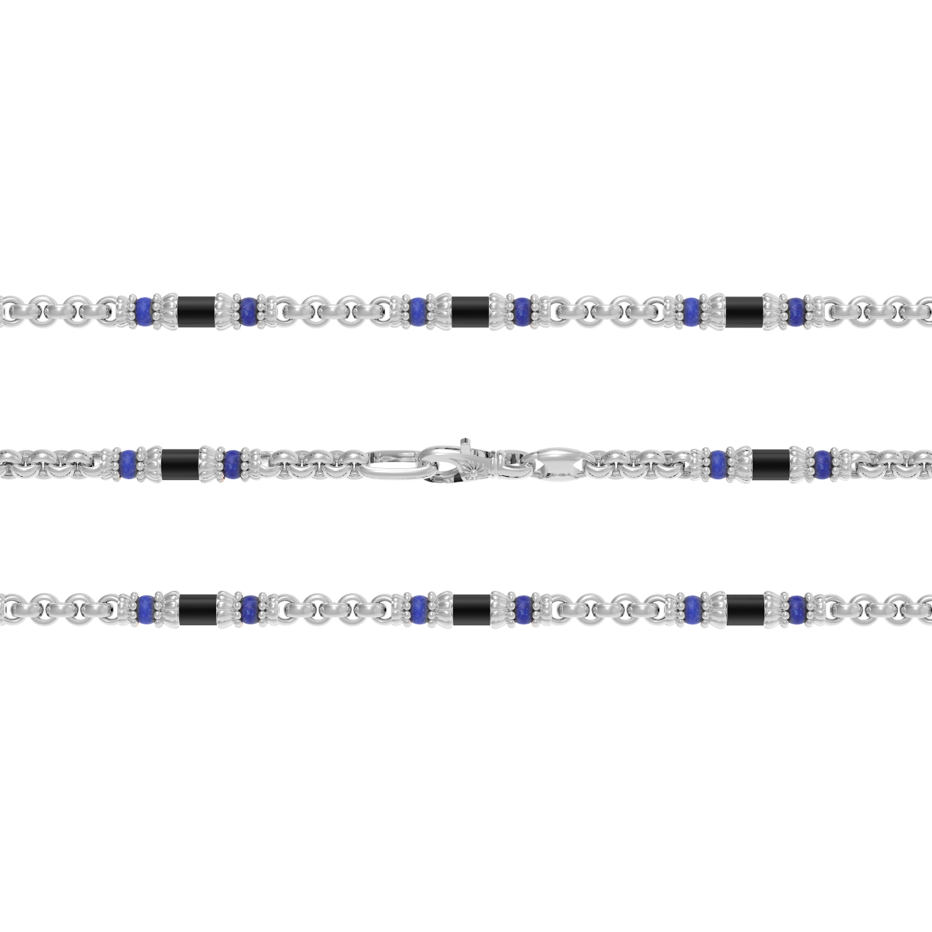 Цепь из белого золота c ониксом и лазуритом