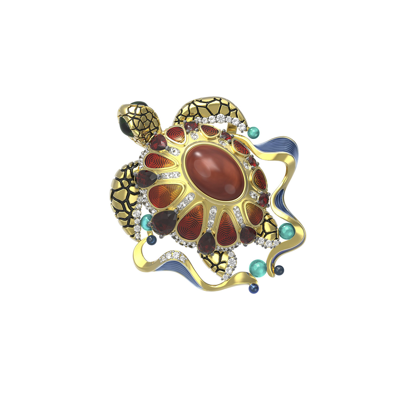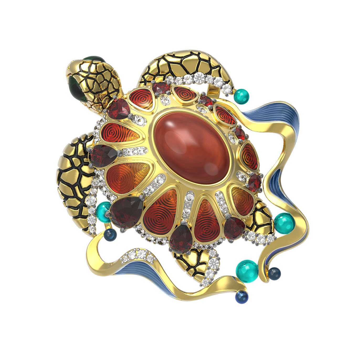 Подвеска из лимонного золота c эмалью, фианитом, гранатом и янтарём