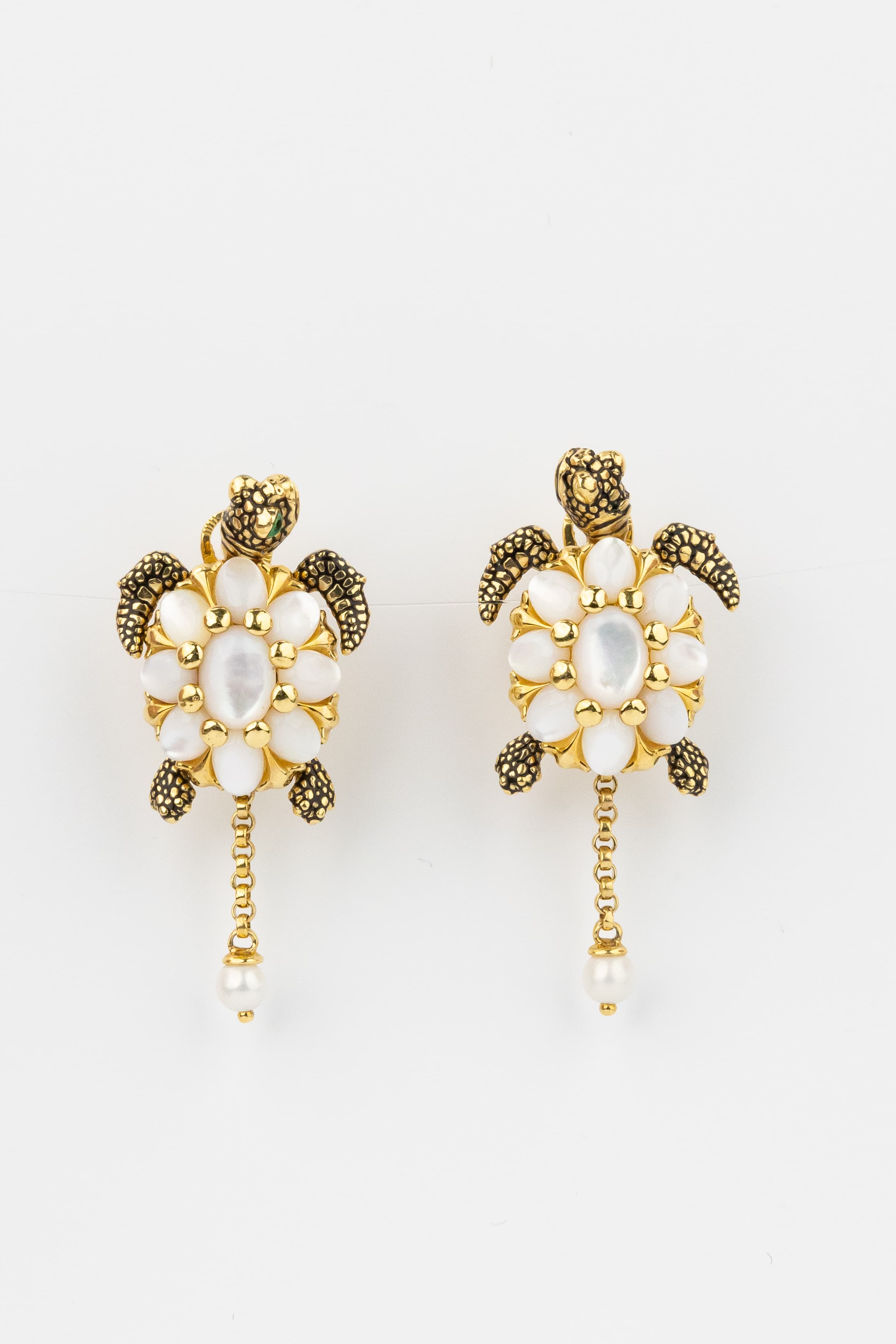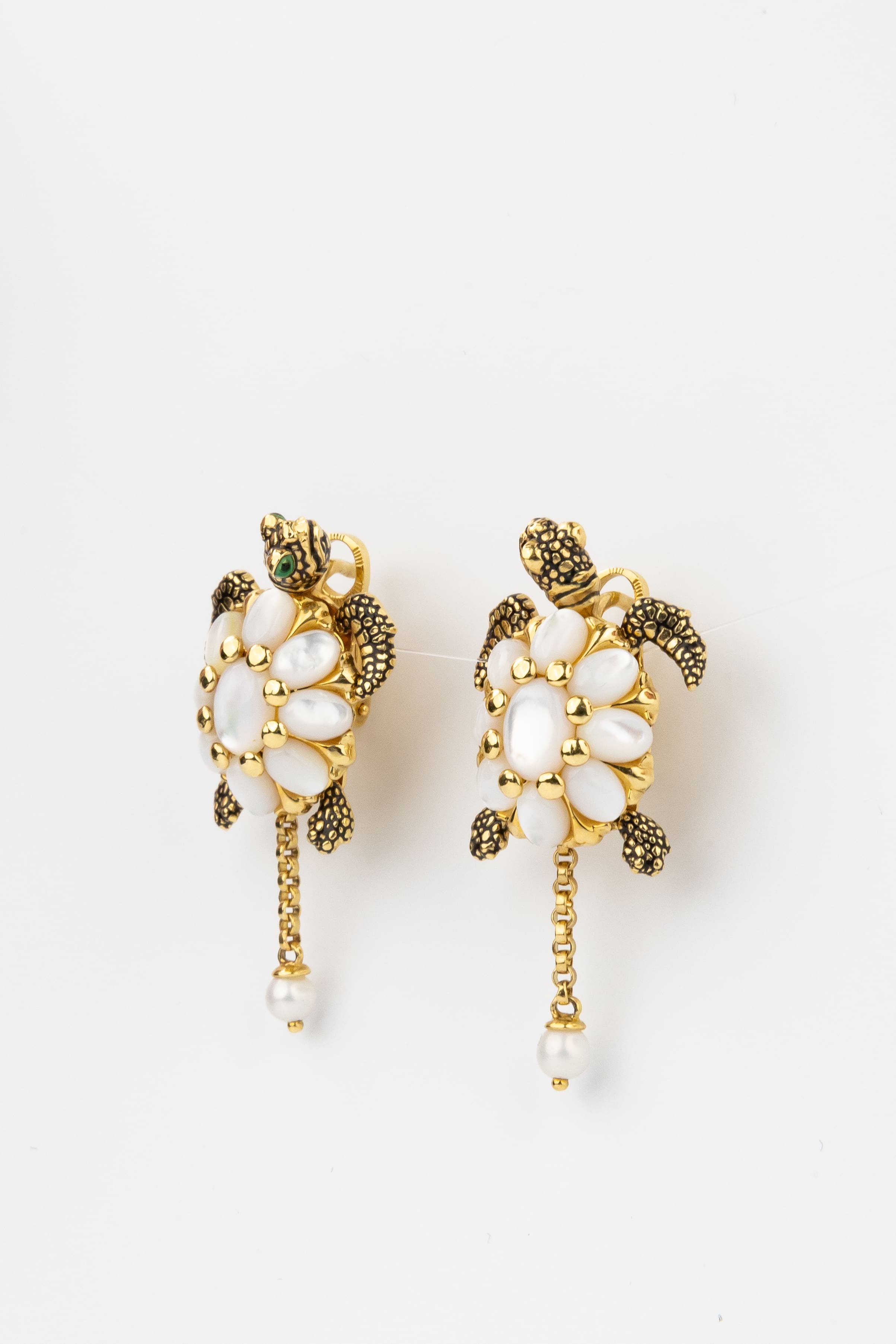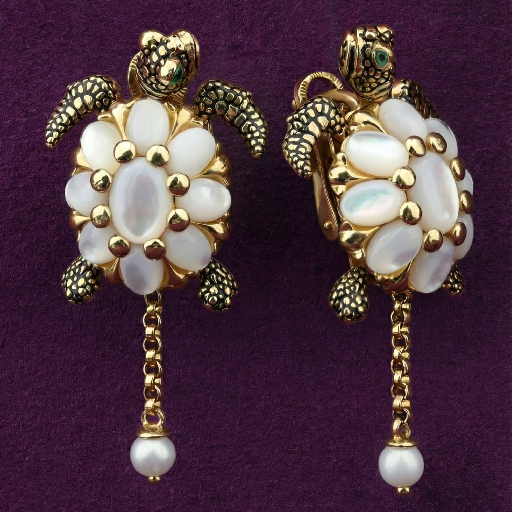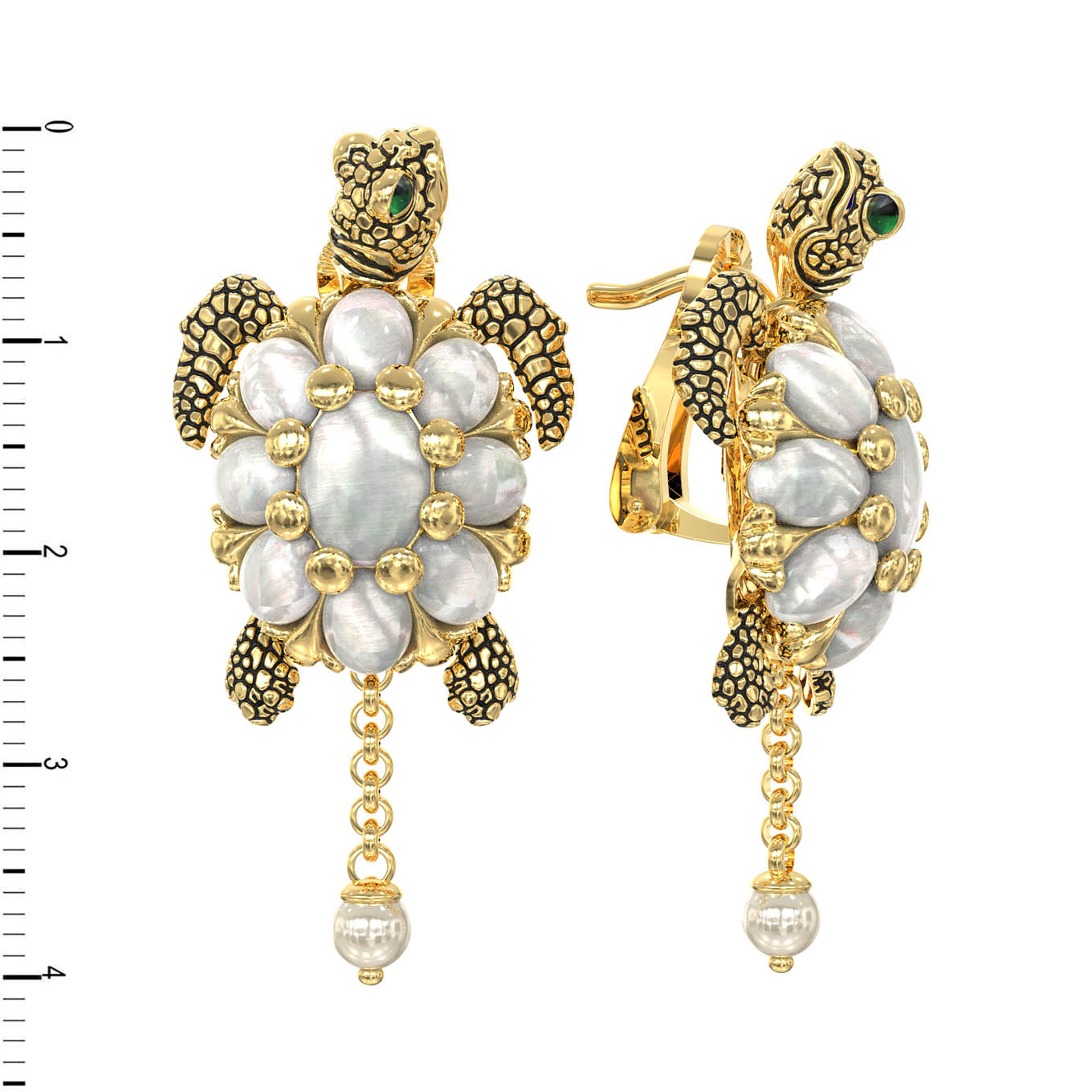 Серьги из лимонного золота c эмалью, жемчугом и перламутром