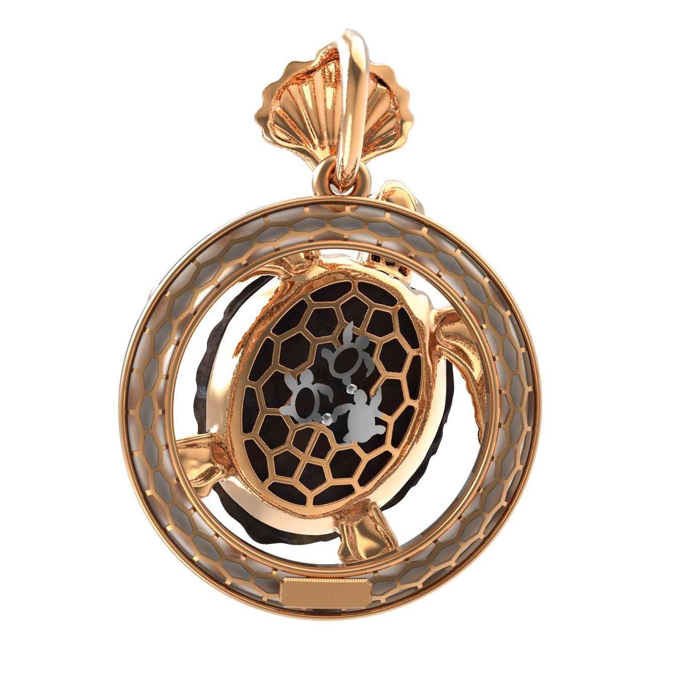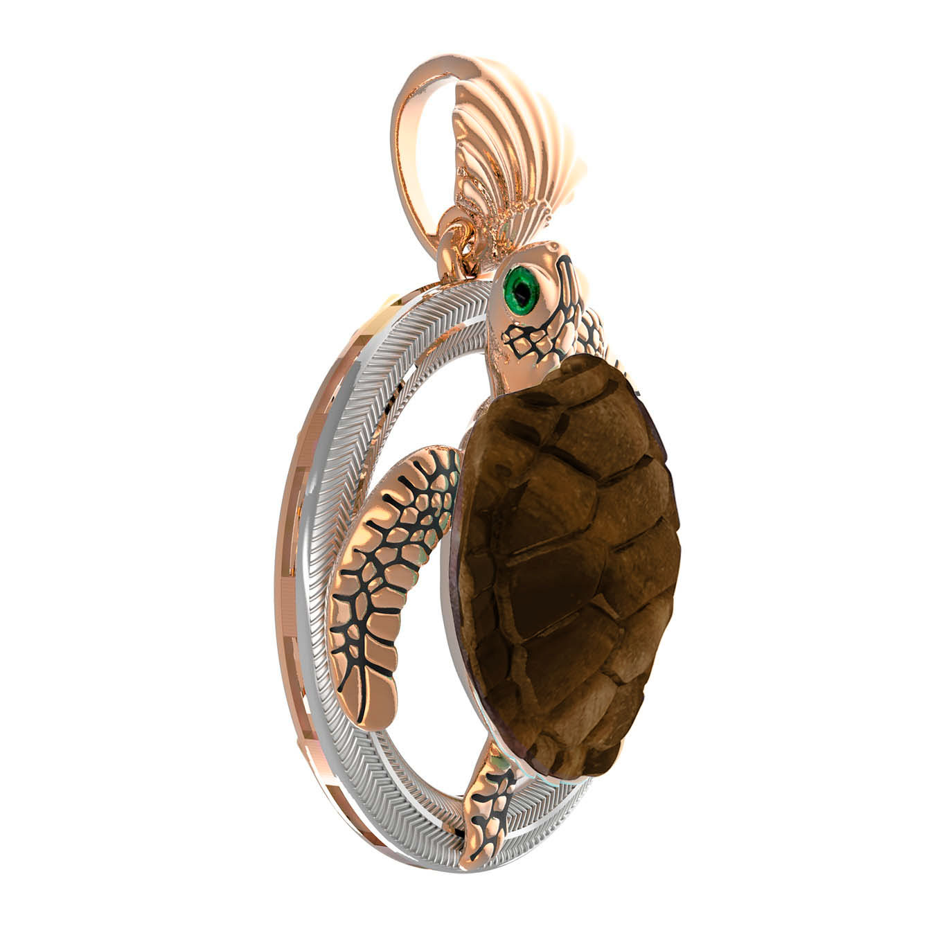 Подвеска из золота c эмалью и железным деревом