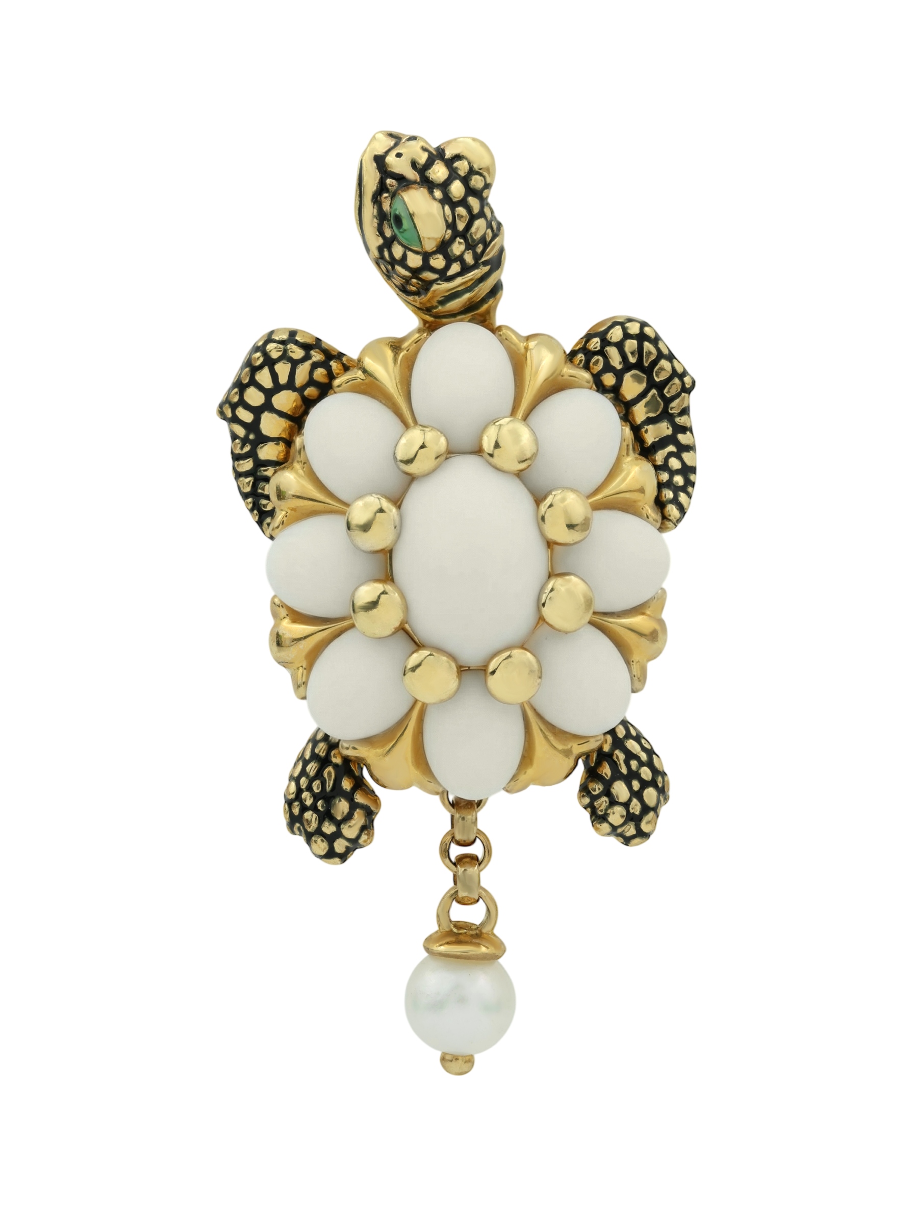 Подвеска из лимонного золота c эмалью, жемчугом и бивнем мамонта