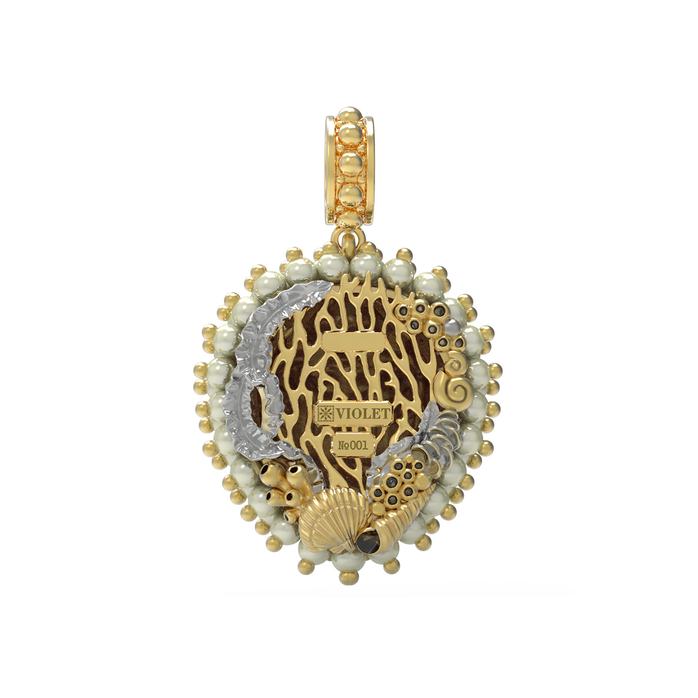 Подвеска из лимонного золота c эмалью и жемчугом